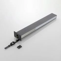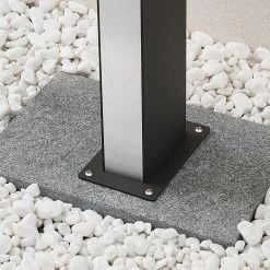 Die LED-Wegeleuchte Aegisa hat eine dunkelgraue Oberfläche und eine sehr geradlinige Form, die ohne Unterbrechungen auskommt und außerordentlich gut zu einer modernen Umgebung passt. Seitlich an der Wegelampe sitzt jeweils eine Abdeckung aus weißem Polycarbonat, so dass der warmweiße Lichtschein der LEDs blendungsminimiert ist und zu beiden Seiten nach außen tritt und man das Licht als sehr angenehm wahrnimmt und nach Einbruch der Dunkelheit immer ein praktisches Orientierungslicht im Hof oder Garten zur Verfügung stehen hat.