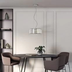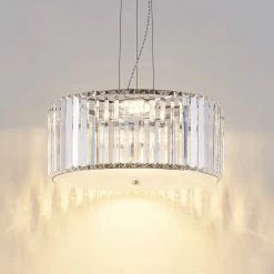 Alobani ist eine sehr schöne LED-HĂ€ngeleuchte, die vor allem durch ihren schönen Leuchtenschirm auffĂ€llt. Da die AbhĂ€ngung eher filigran gestaltet wurde, steht der Leuchtenschirm hier gĂ€nzlich im Vordergrund. Er ist zylindrisch geformt und besteht ĂŒberwiegend aus wertigem Kristallglas, das sehr schön schimmert.