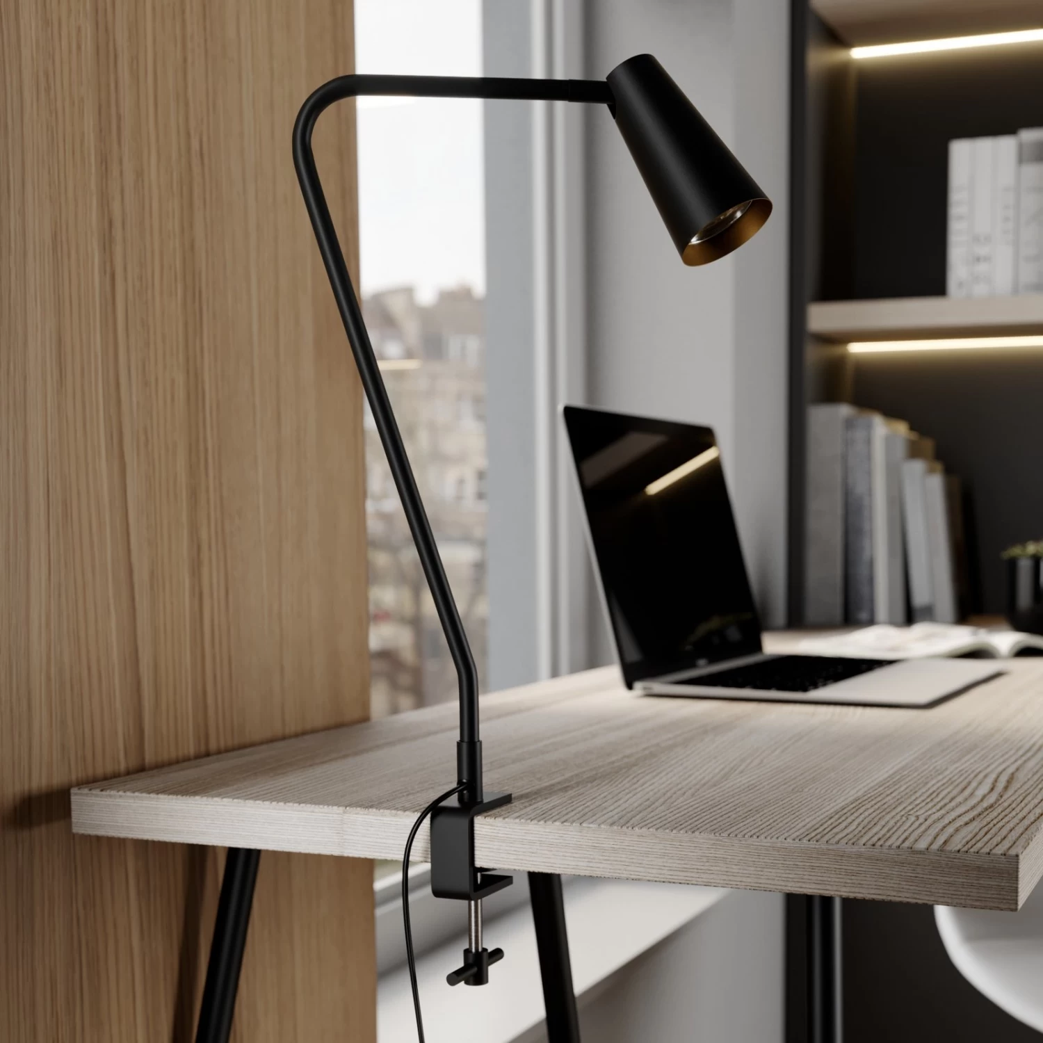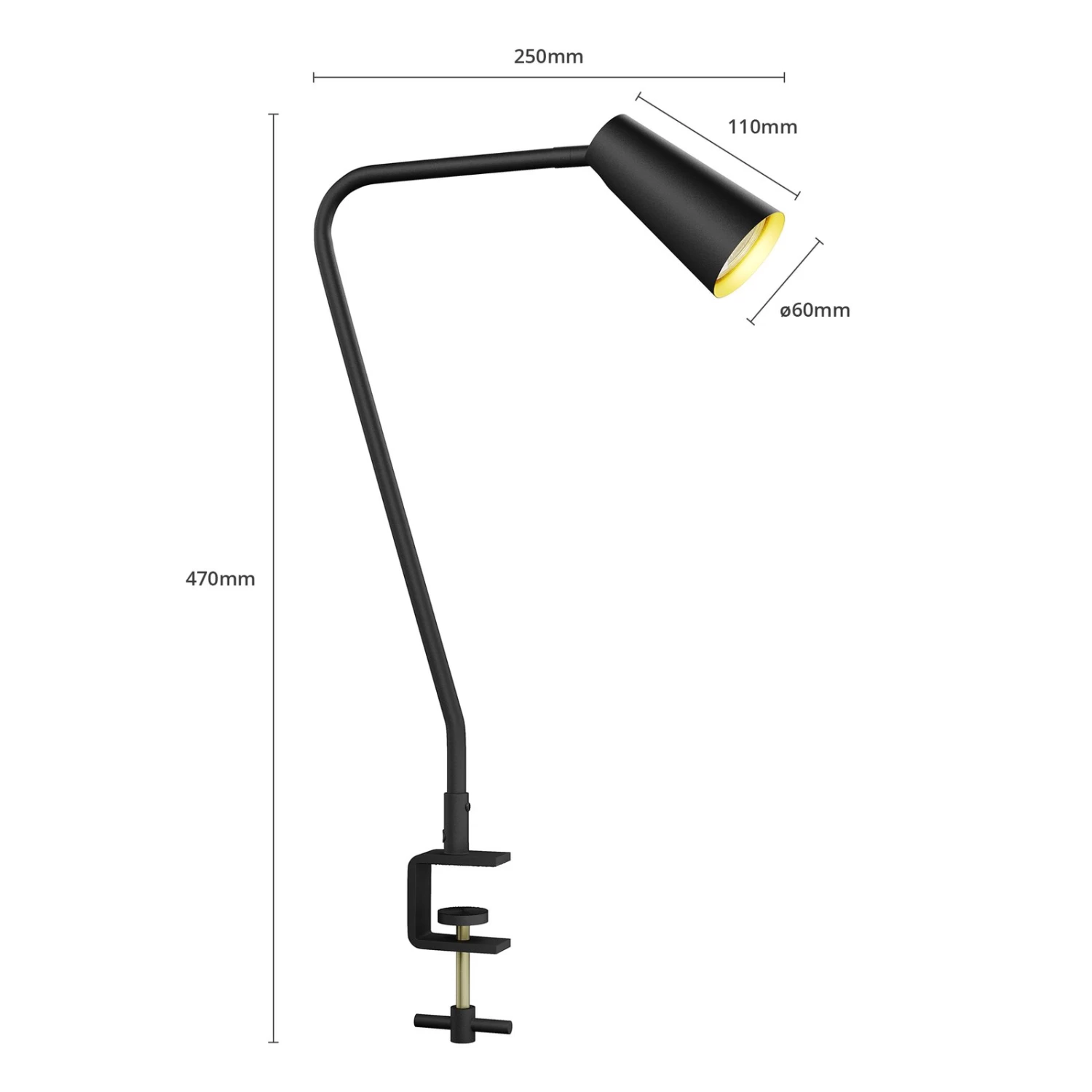 Schwarz-goldene Klemmleuchte Angelina aus Metall