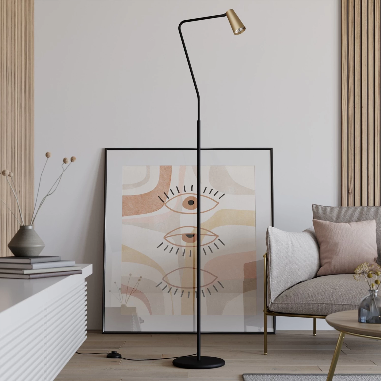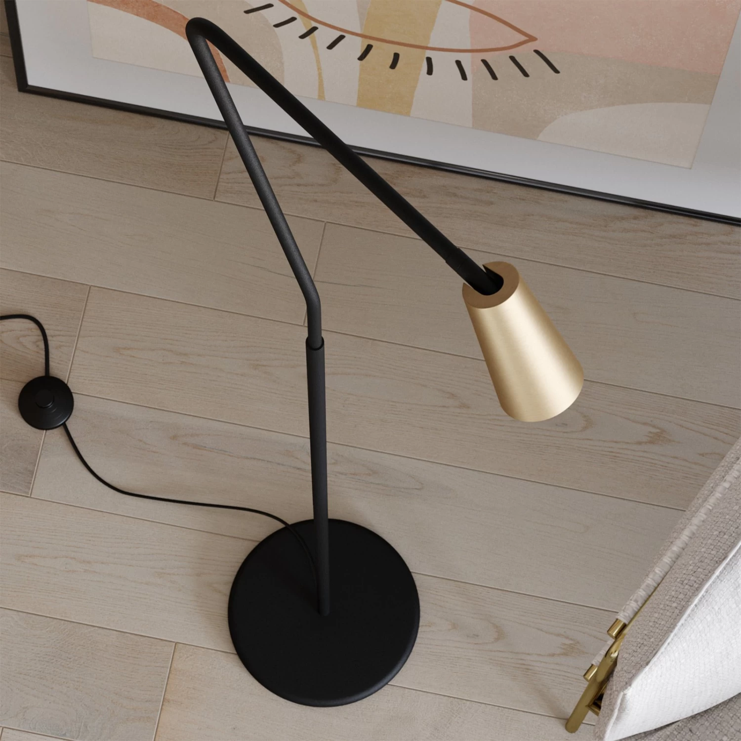 Detailreduzierte Stehleuchte Angelina aus Metall in Schwarz und Messing – ideal zum Lesen geeignet