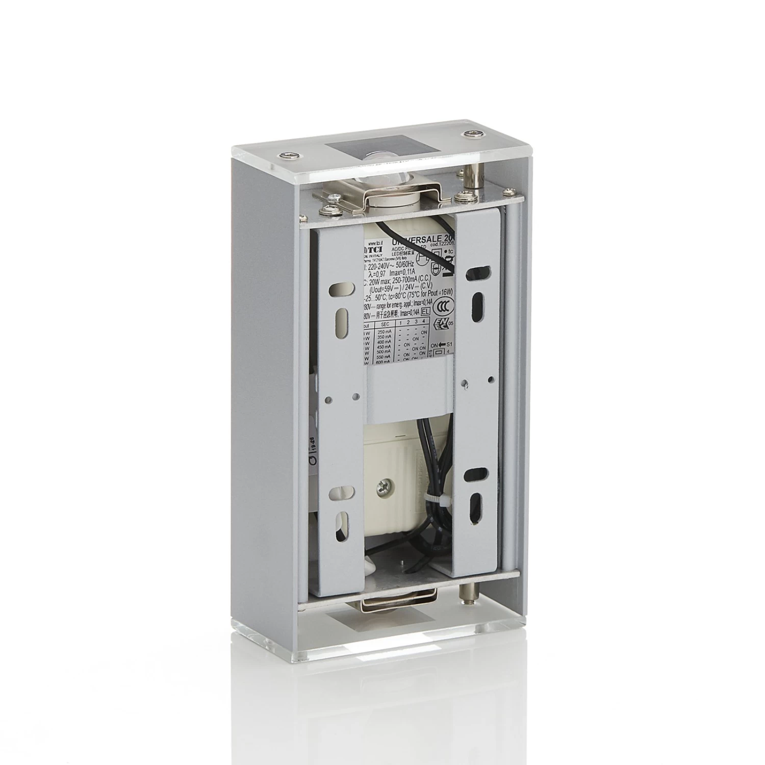 Der rechteckige Korpus der Wandleuchte Anita ist aus Stahl gefertigt und an beiden Enden mit LEDs ausgestattet. Die Leuchtmittel verteilen ihr warmweißes Licht von der Decke bis zum Boden. Über den LEDs sind Diffusoren aus satiniertem Glas angebracht, die für eine gleichmäßige Verteilung des intensiven Lichts sorgen. Mit ihren geometrischen Formen und den verwendeten Materialien wirkt die Leuchte Anita modern, dennoch passt sie mit ihrer schlichten Erscheinung zu unterschiedlichen Einrichtungen.