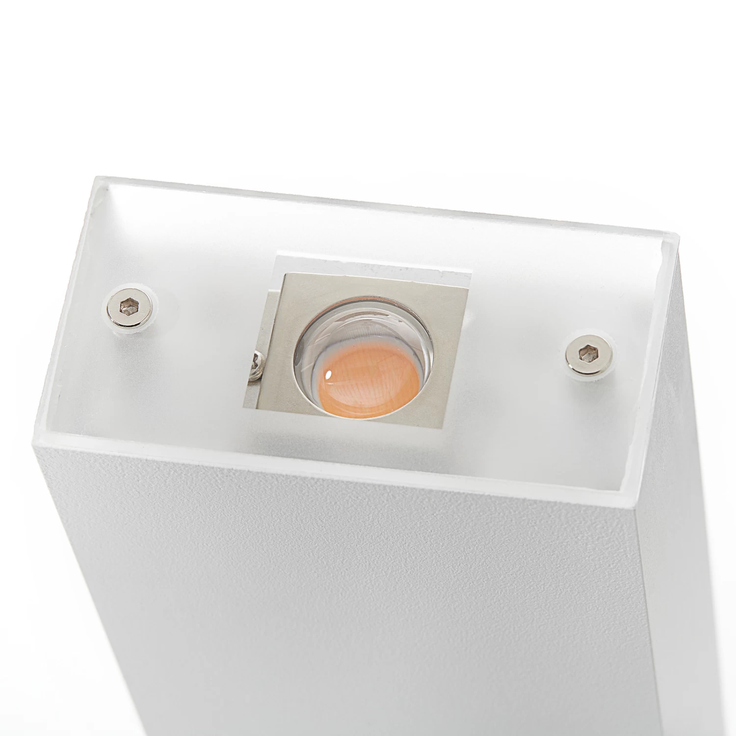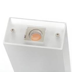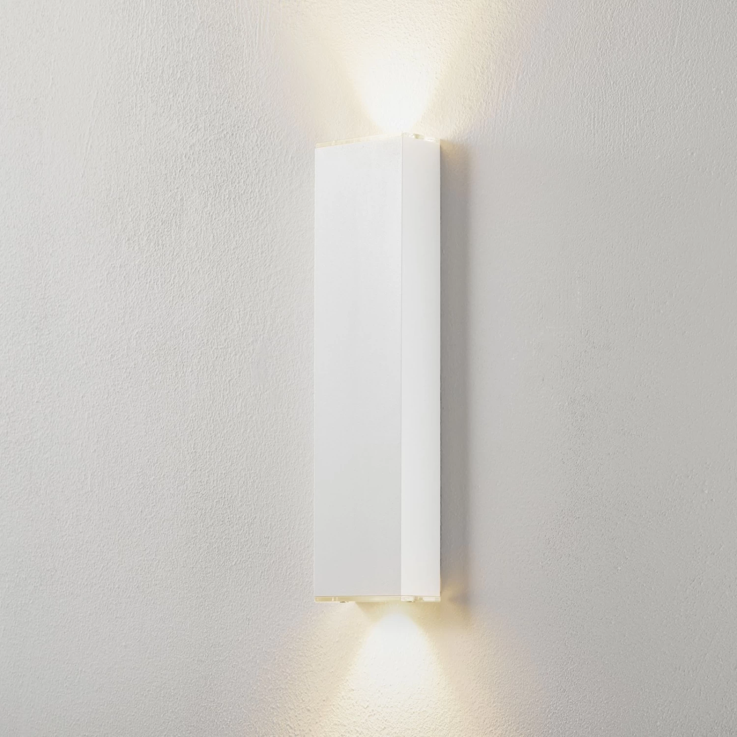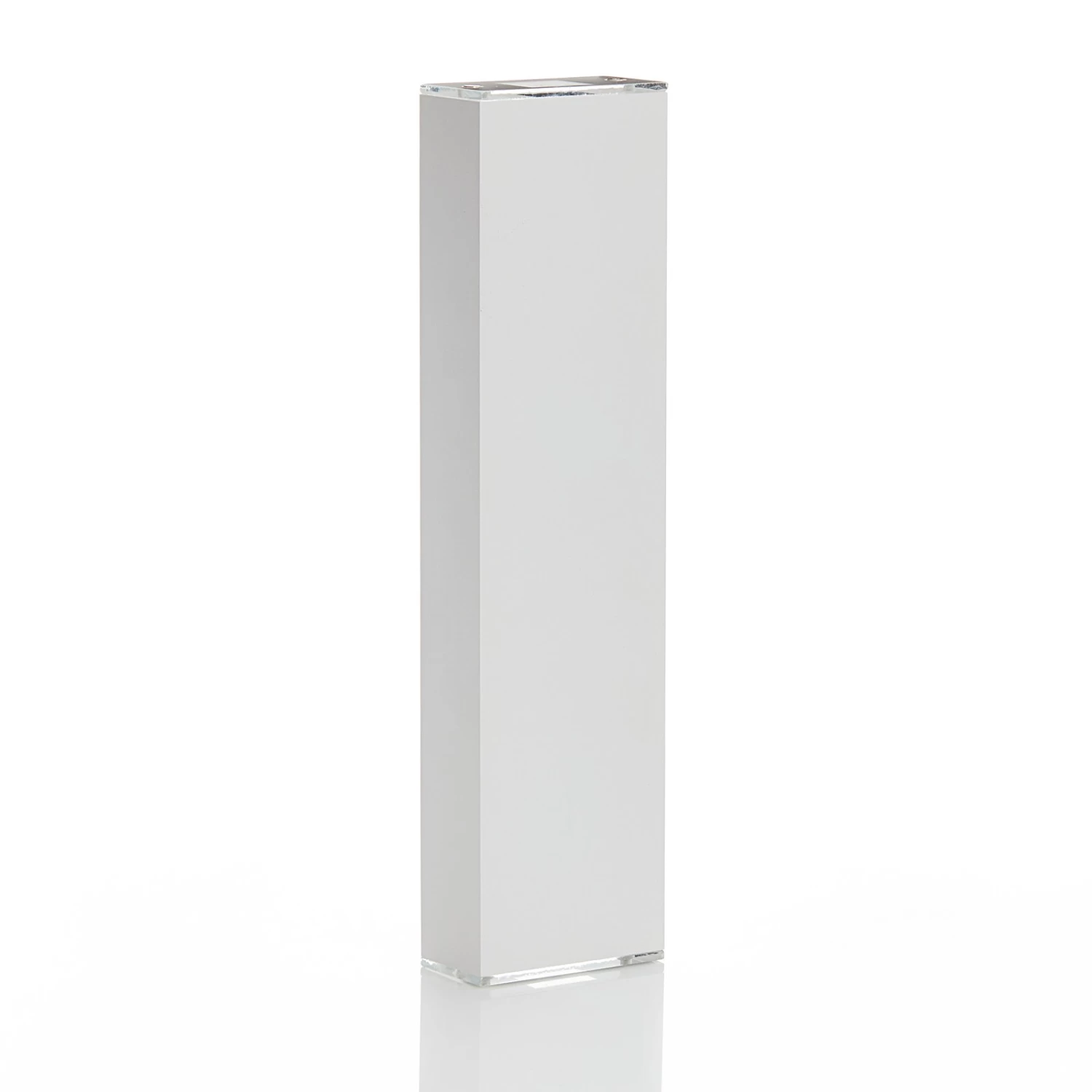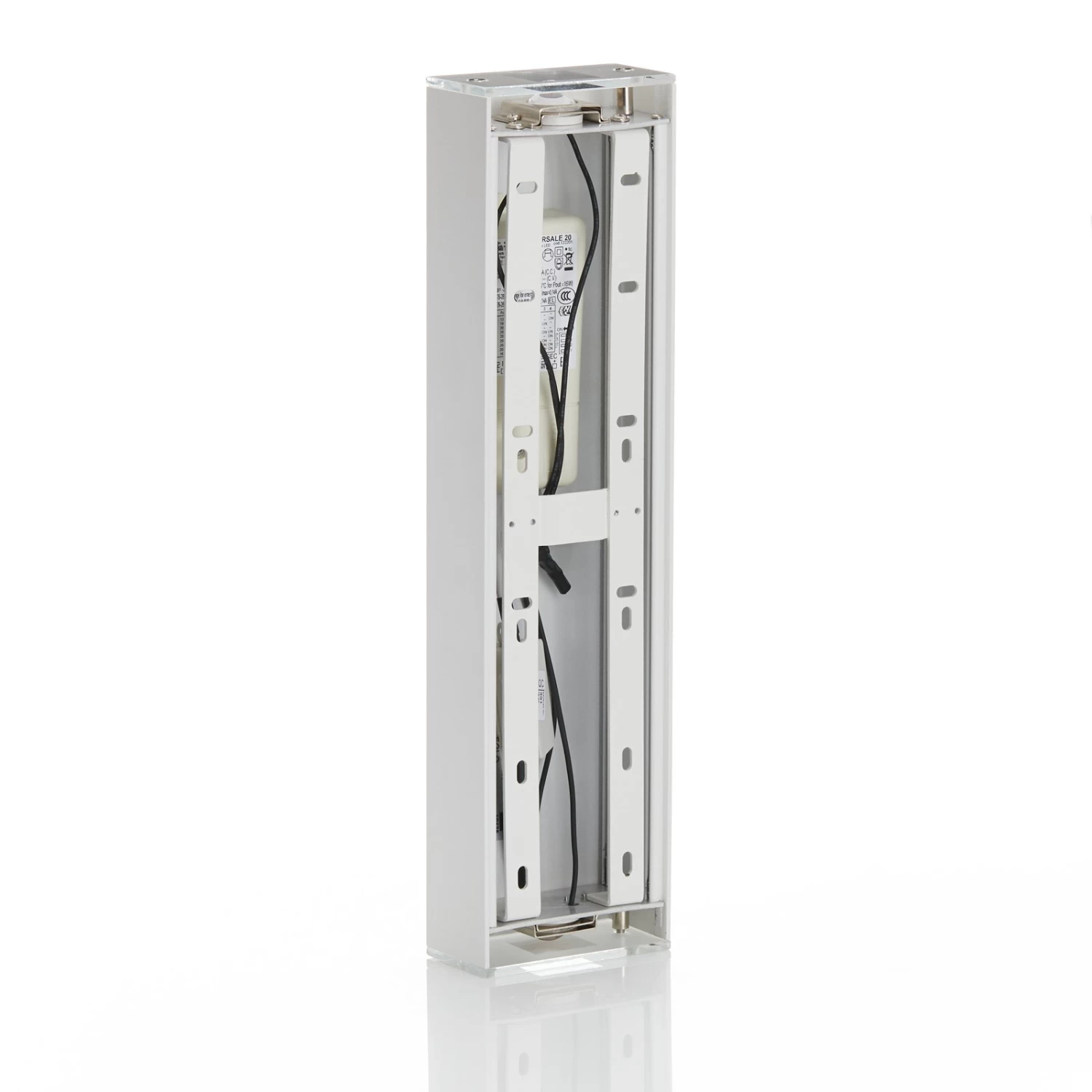 Der rechteckige Korpus der Wandleuchte Anita ist aus Stahl gefertigt und an beiden Enden mit LEDs ausgestattet. Die Leuchtmittel verteilen ihr warmweißes Licht von der Decke bis zum Boden. Über den LEDs sind Diffusoren aus satiniertem Glas angebracht, die für eine gleichmäßige Verteilung des intensiven Lichts sorgen. Mit ihren geometrischen Formen und den verwendeten Materialien wirkt die Leuchte Anita modern, dennoch passt sie mit ihrer schlichten Erscheinung zu unterschiedlichen Einrichtungen.