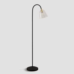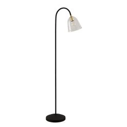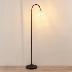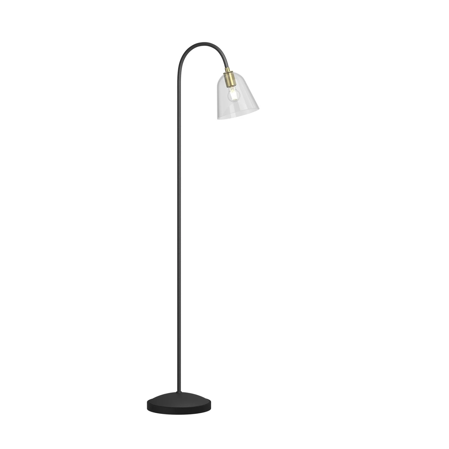 Gebogene Design-Stehlampe Anjita mit Glasschirm und schwarzem Gestell