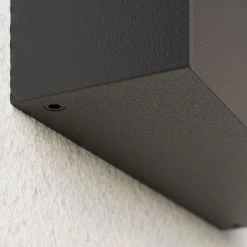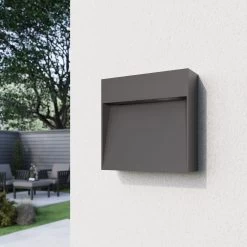 Noreia ist eine LED-AuĂenwandleuchte mit der hohen Schutzart IP65, die ohne Weiteres im AuĂenbereich Verwendung finden kann, weil sie ausreichend vor Schmutz und Wasser geschĂŒtzt ist. Ihr Aluminiumkörper ist mit einem dunkelgrauen Finish versehen worden, das zu vielen Fassaden passt und recht zeitlos erscheint. Das einzusetzende G9-Leuchtmittel gibt sein Licht nach unten ab, was ein angenehmes Licht zum guten Orientieren zur Folge hat, ohne dass man irgendwelche Blendungen erfĂ€hrt. Die eckige Grundform lĂ€sst sich auch sehr gut mit moderner Architektur verbinden, sie wirkt allerdings auch angenehm zeitlos, so dass sie auch in klassischeren Umgebungen zum Einsatz kommen kann.
