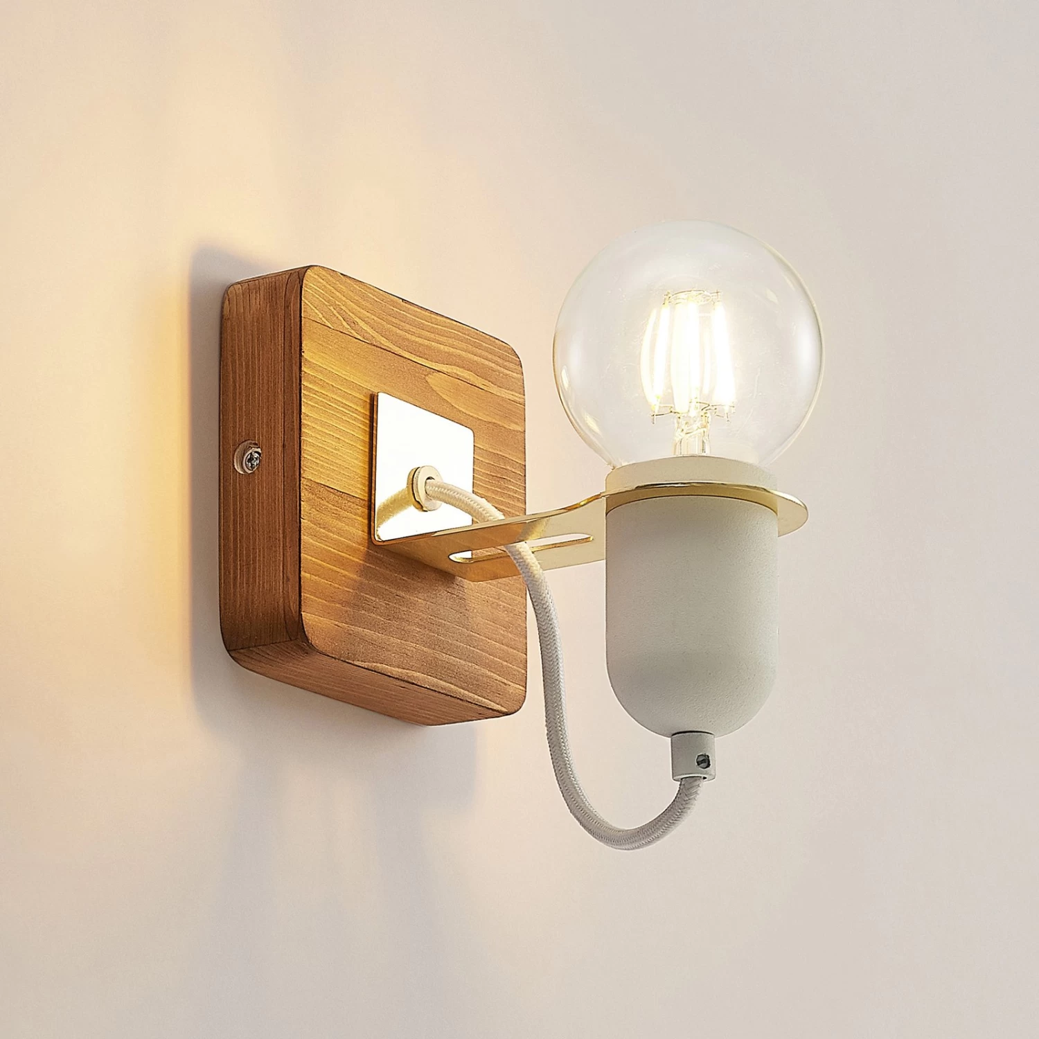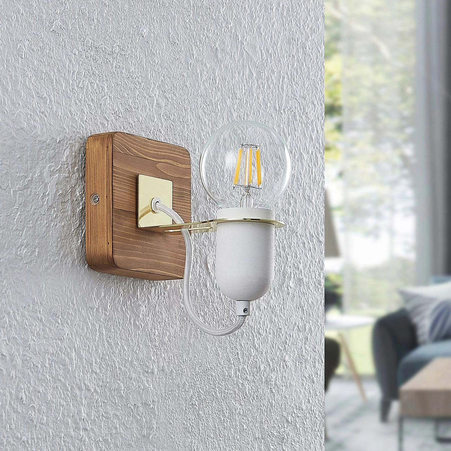 Markanter Wandspot Becky aus Kiefernholz und Eisen in Weiß