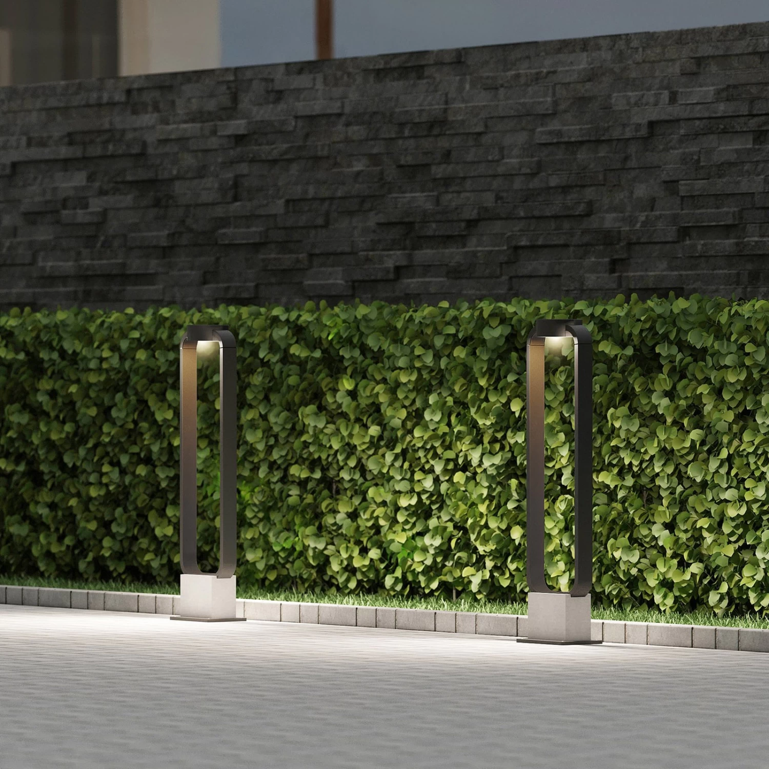 Dank integrierter LED-Technik leuchtet Belna auf sparsame Weise und der im oberen Teil eingelassene Leuchtkopf in flacher Rundform ist so in die Pollerleuchte eingebaut, dass das Licht nach unten scheint und mit Blendfreiheit punktet. Stattdessen kann ein angenehmes Rundumlicht zu Orientieren gewĂ€hrleistet werden. Optisch ĂŒberzeugt Belna mit der Kombination aus einem filigranen, rahmenförmigen Aluminiumgestell und einem massiven Sockel aus Beton, die einen wirkungsvollen und doch harmonischen Kontrast erschaffen.