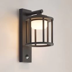 PrĂ€gnante AuĂenwandleuchte Benerike in Dunkelgrau mit Bewegungssensor