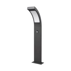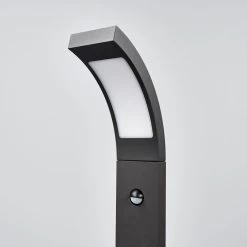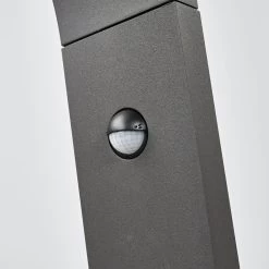 Juvia besitzt eine moderne Formensprache und wirkt recht geradlinig. Nur im oberen Teil neigt sich der Leuchtkopf mit den integrierten LEDs, so dass der Lichtschein mehr zum Boden gerichtet ist. Der Aluminiumkörper hat eine dunkelgraue Lackierung und ein wichtiges Feature der LED-Wegeleuchte ist natĂŒrlich der integrierte Sensor unterhalb der LeuchtflĂ€che.