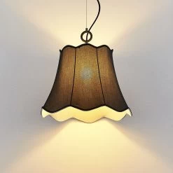 Das Design ist bei dieser HĂ€ngeleuchte exklusiv und die schwarze Tönung des Schirms bewirkt eine verstĂ€rkte Abblendung des Lichtscheins, so dass das Licht im Raum mit Binta besonders gemĂŒtlich erscheint. Der Textilschirm schlieĂt oben und unten wellenförmig ab, so dass die Pendellampe eine optische Verbindung zu traditionellen BezĂŒgen herstellt und einen angesagten Vintagelook verkörpert, der eine gewisse Nostalgie erkennen lĂ€sst. Schön fĂŒr ein Schlafzimmer und andere Wohnbereiche!