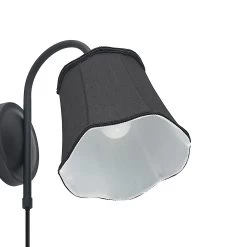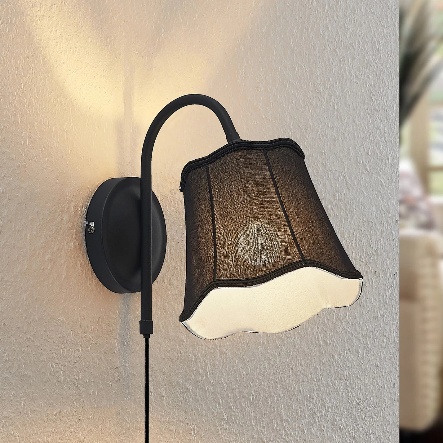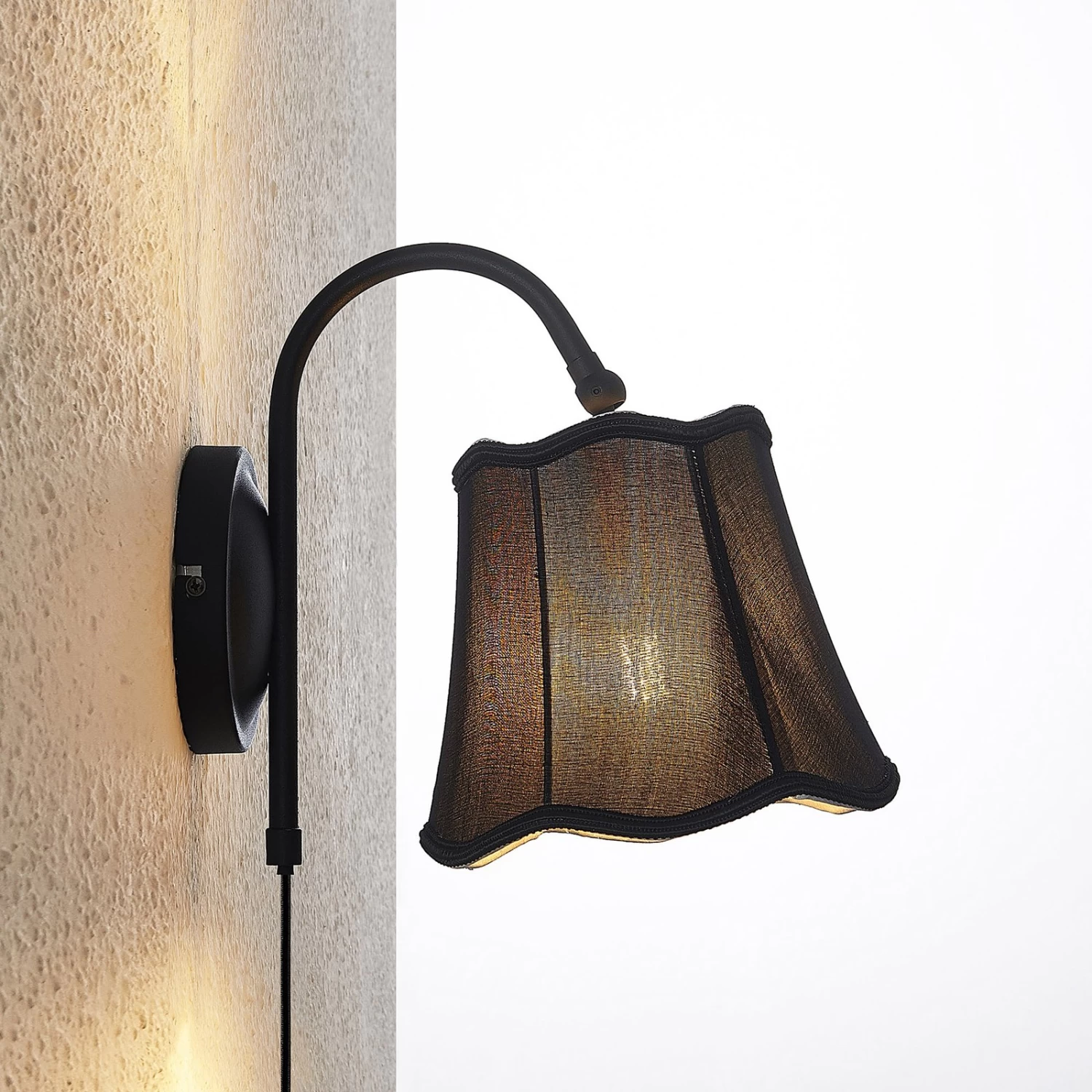 Retro-Wandleuchte Binta in Schwarz mit Stoff-Schirm