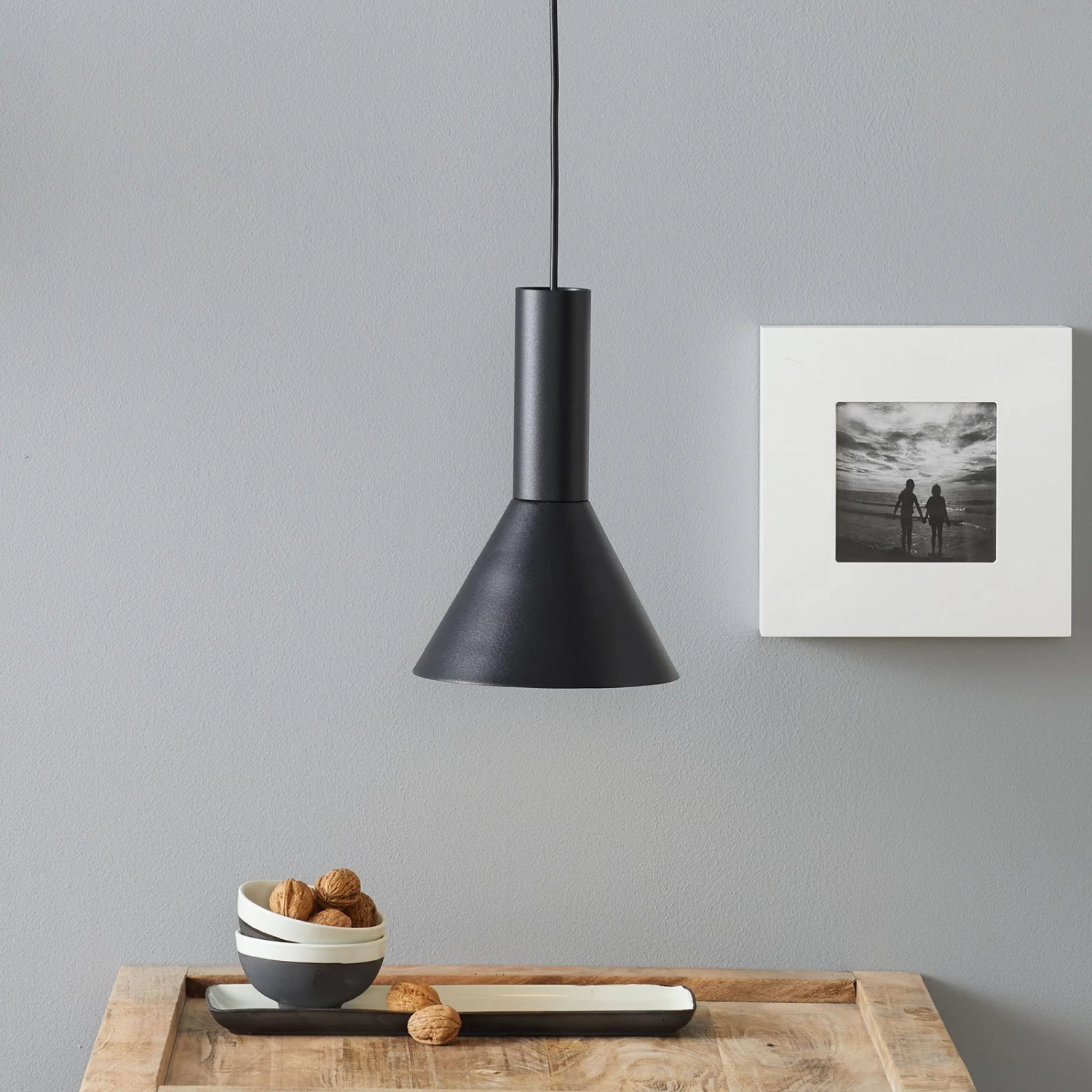 Schlichte Eleganz – das beschreibt die HĂ€ngeleuchte Caris. Sie begeistert mit klaren Linien und einem zurĂŒckhaltenden Design. Das GehĂ€use besteht aus schwarz lackiertem Stahl, welcher der Leuchte zusĂ€tzlich ModernitĂ€t verleiht. Dank des nach unten geöffneten Lampenschirms eignet sich die Leuchte hervorragend, um einen Tisch im Wohn- oder Esszimmer auszuleuchten. Der trichterförmige Lampenschirm erlaubt dabei einen freien Blick auf das Leuchtmittel (nicht enthalten). Dadurch sollte ein Leuchtmittel in trendiger Filament- oder Kohlefaser-Optik gewĂ€hlt werden.