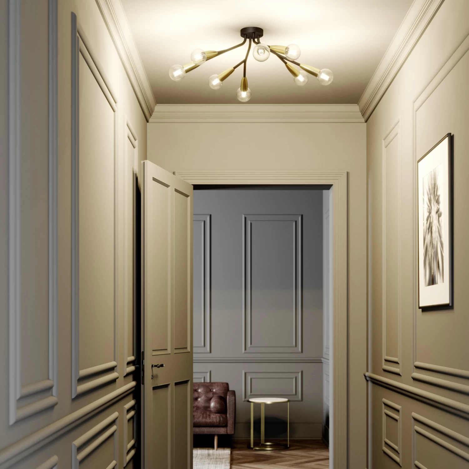 Carlea ist eine designorientierte Deckenlampe, die angenehm ins Auge fĂ€llt und vor allem fĂŒr moderne Einrichtungen ein sehr stilvoller Lichtspender ist. Gerade in der achtflammigen AusfĂŒhrung kann die Leuchte sehr gut als Hauptlichtspender genutzt werden, der aber gerne um weitere Lichtquellen ergĂ€nzt werden kann. Farblich entsteht ein wirkungsvoller Kontrast mit der Kombination aus dem schwarzem Gestell und den messingfarbenen Fassungen. Dabei sollte man stets im Auge behalten, dass die E27-Lampen, die frei gewĂ€hlt werden können, nicht bloĂ dazu dienen, fĂŒr Helligkeit zu sorgen, sondern auch Teil der Gesamtoptik sind. FĂŒr diesen Zweck sind LED-Filamentlampen besonders brauchbar, denn sie verbrauchen nur wenig Energie und sehen normalen GlĂŒhbirnen sehr Ă€hnlich.