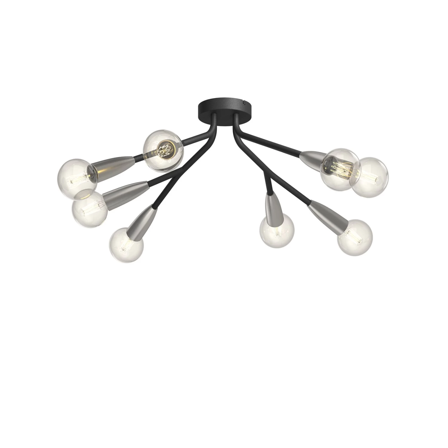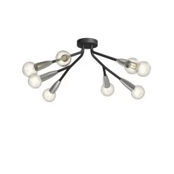 Runde, achtflammige Deckenleuchte Carlea in Schwarz und Nickel