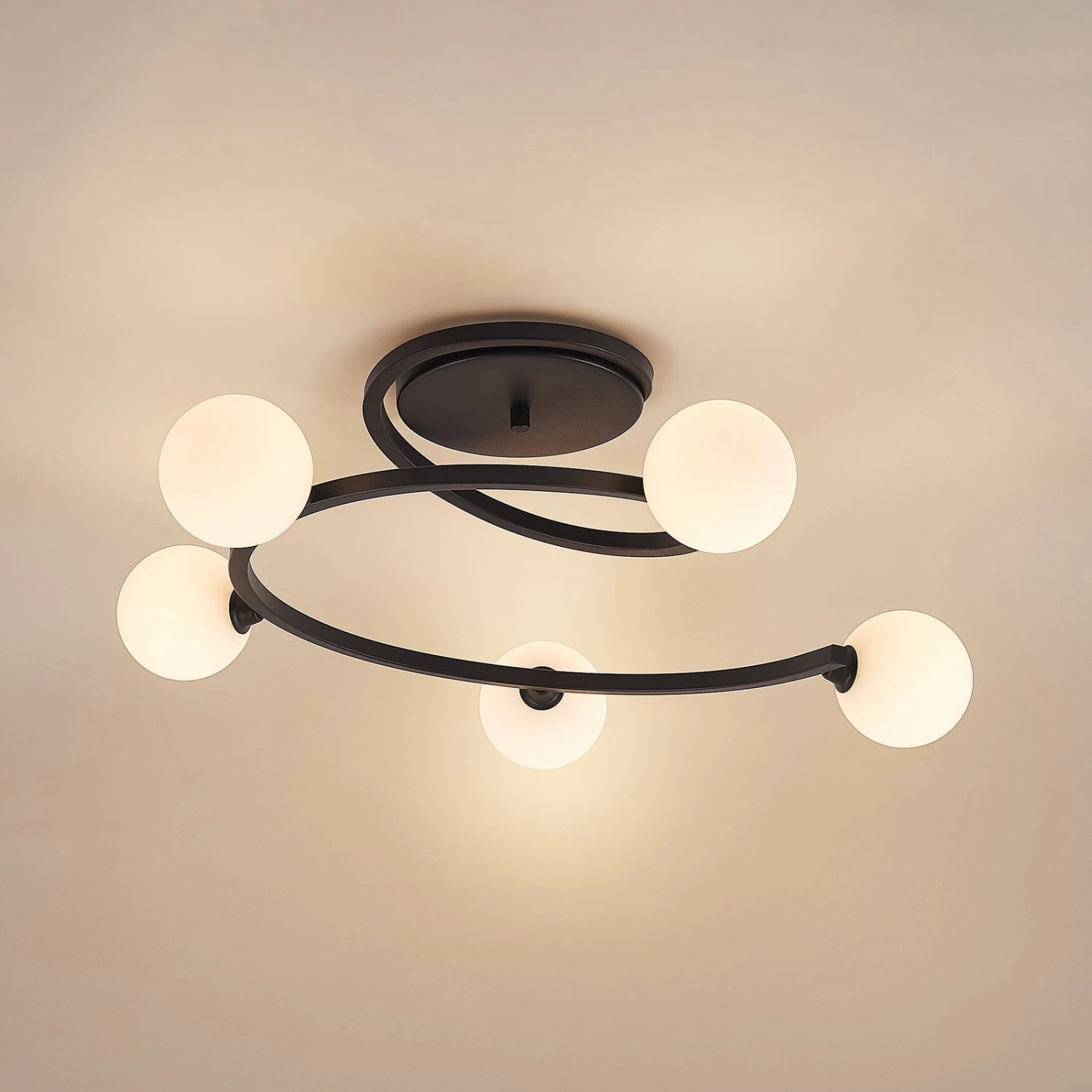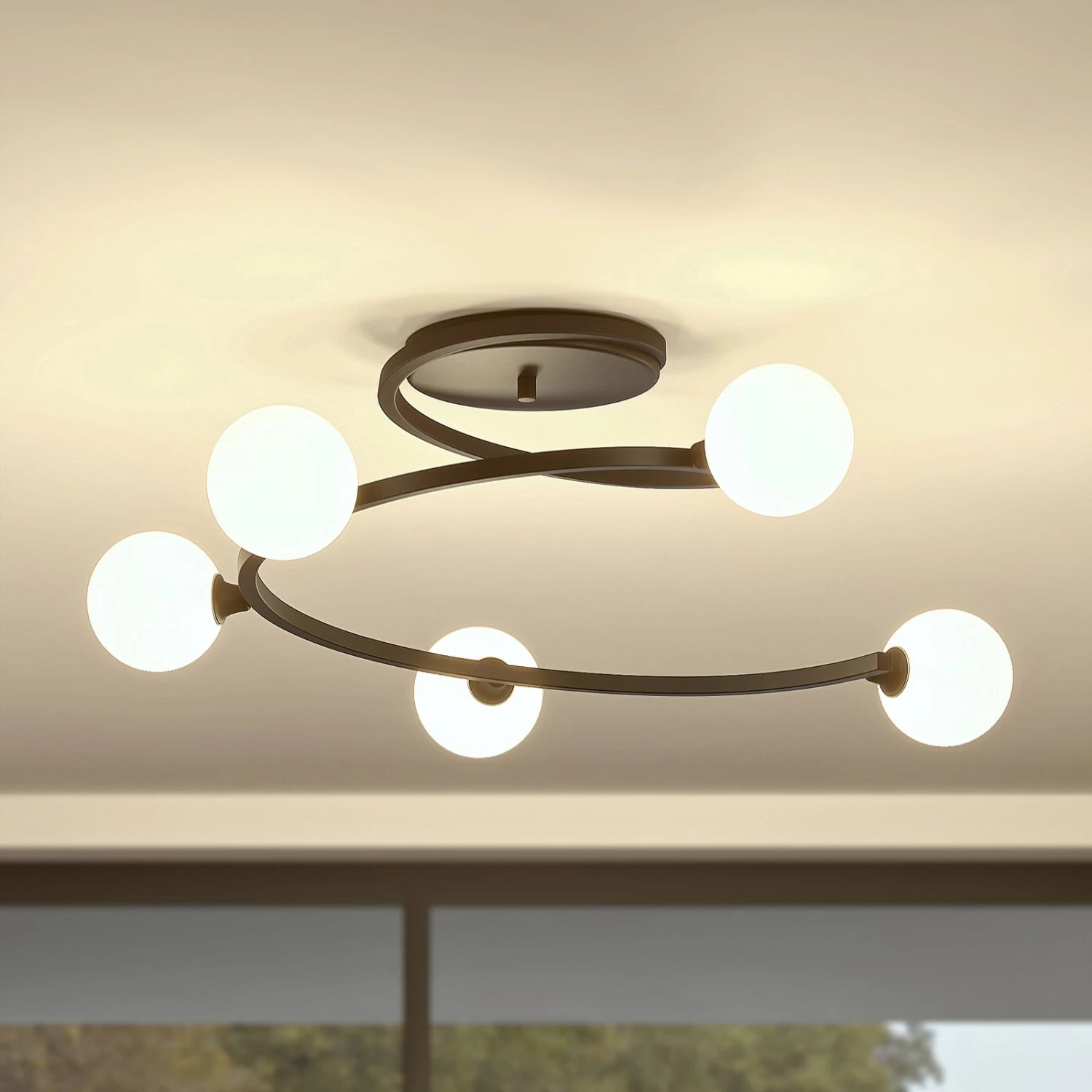 Spiralförmige Deckenleuchte Chenoa mit Glasleuchtenschirmen