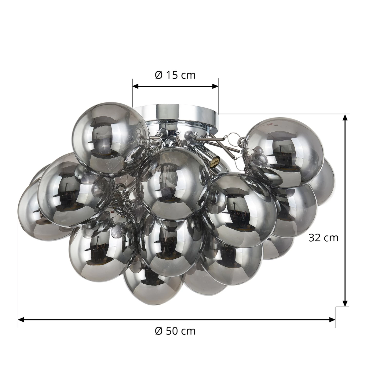 Deckenleuchte Diborah mit rauchgrauen Glaskugeln als Lampenschirme