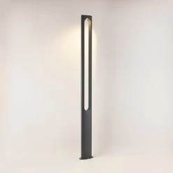 Die LED-Mastleuchte Dovino überzeugt auf ganzer Linie mit ihrem einfachen, jedoch sehr markanten Design. Das Gestell aus Aluminiumdruckguss ragt rechteckig aus dem Boden empor und hat in seiner Mitte eine große, lange Öffnung in Form eines Ovals.