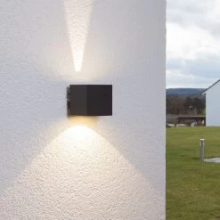 Die LED-Sockelleuchte der Serie Nanna ist eine empfehlenswerte Ergänzung für alle, die Garten und Grundstück modern und energiesparend inszenieren möchten. Der kantige Leuchtenkörper besteht aus anthrazitfarben lackiertem Aluminium. Im Inneren ist ein Chip mit Epistar Marken-LEDs integriert, die bei einer Farbtemperatur von 2.700 Kelvin eine angenehme Beleuchtung bieten.
