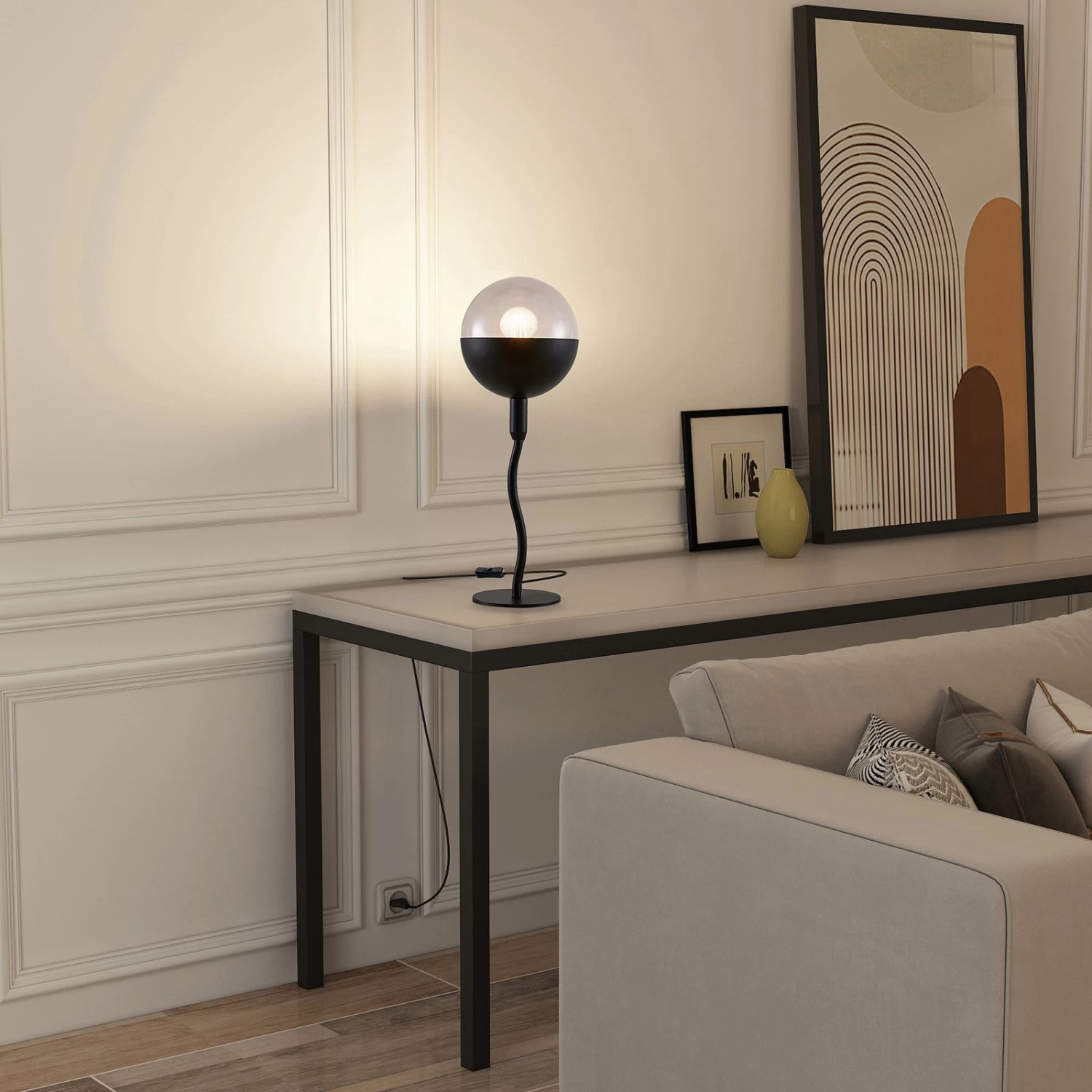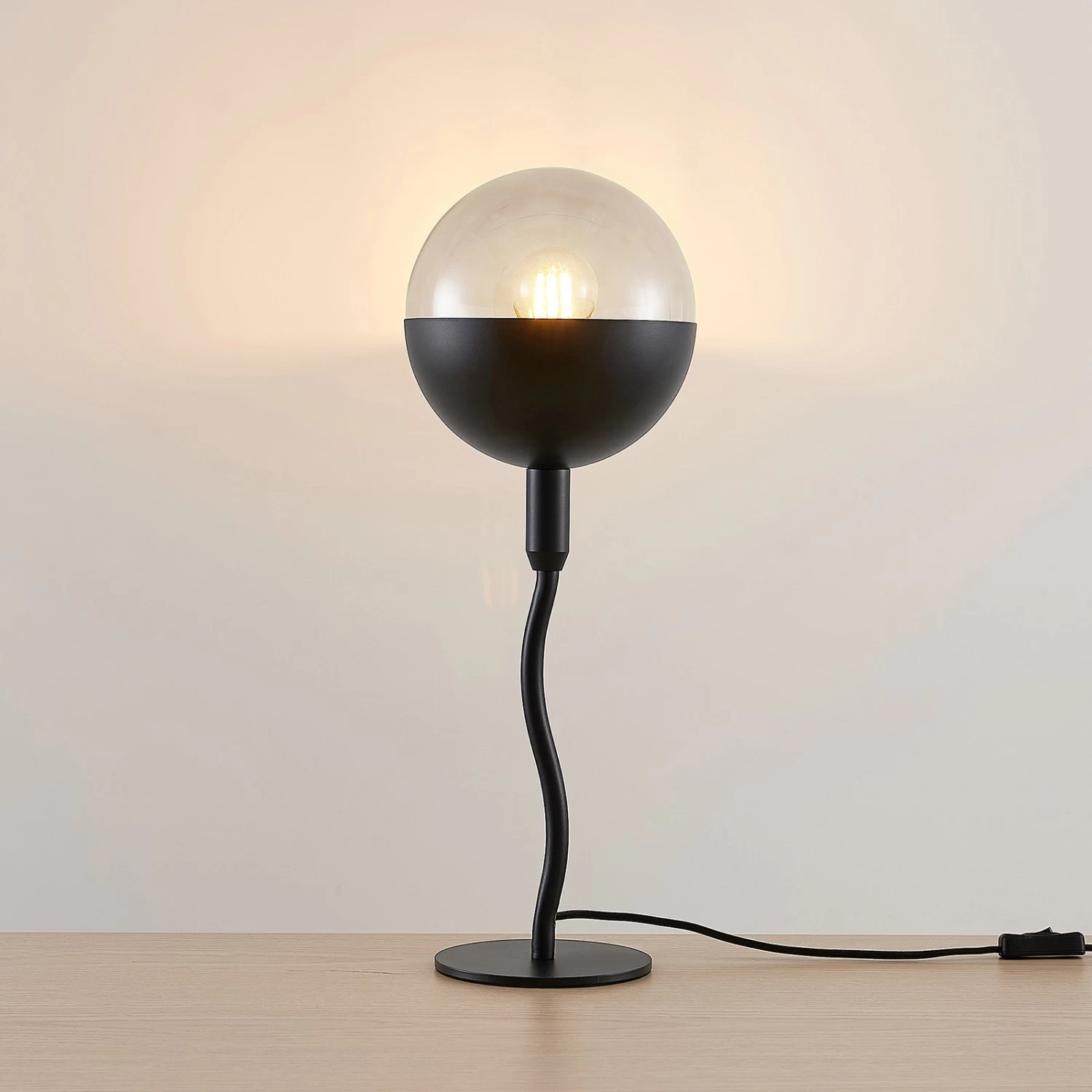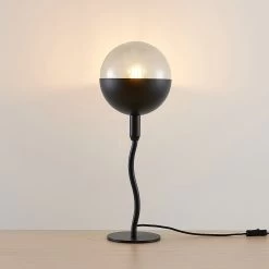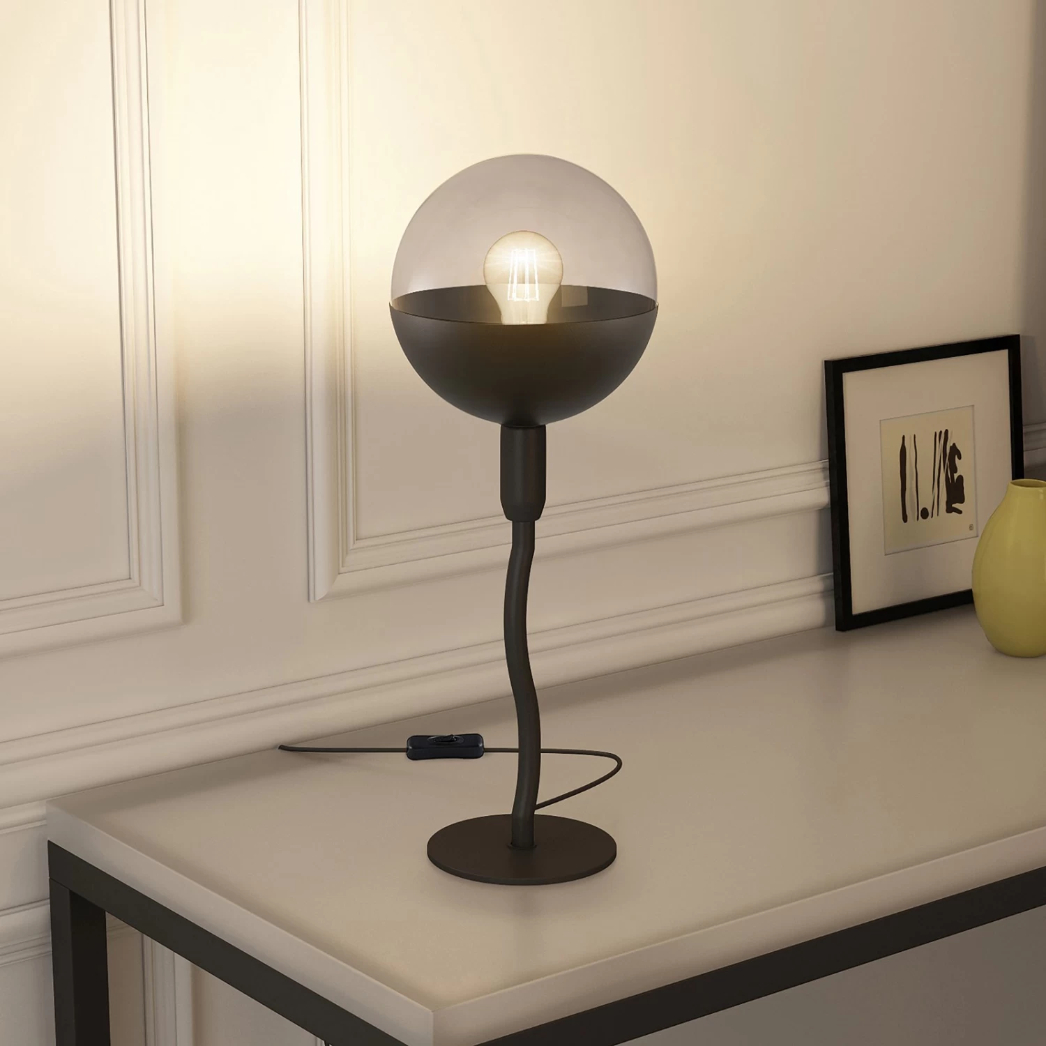 Schwarze Tischlampe Dustian mit sehenswertem Objektcharakter und ausgeprÀgter Designsprache