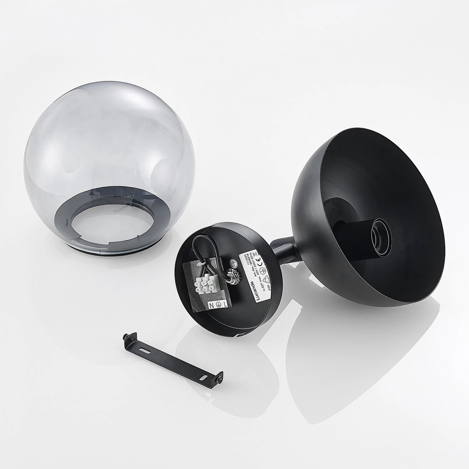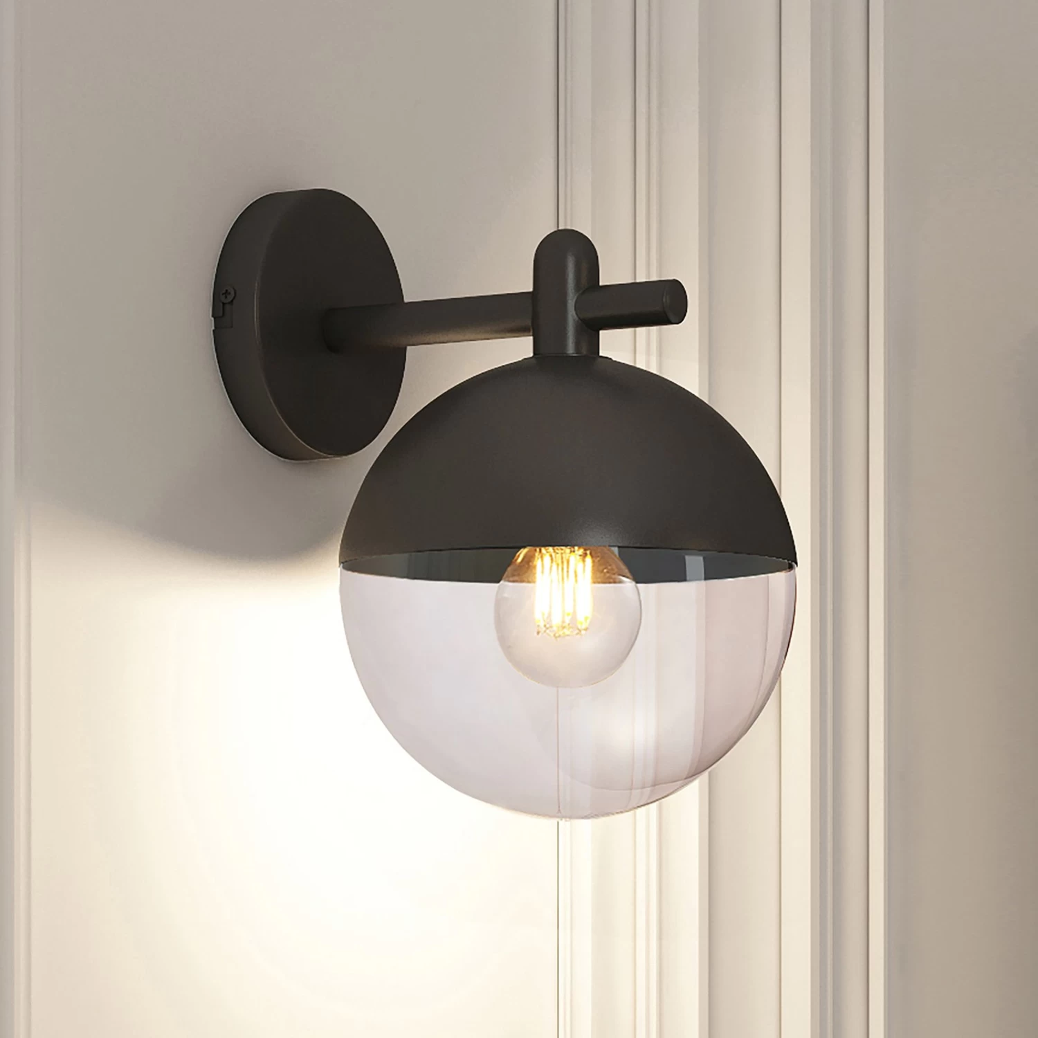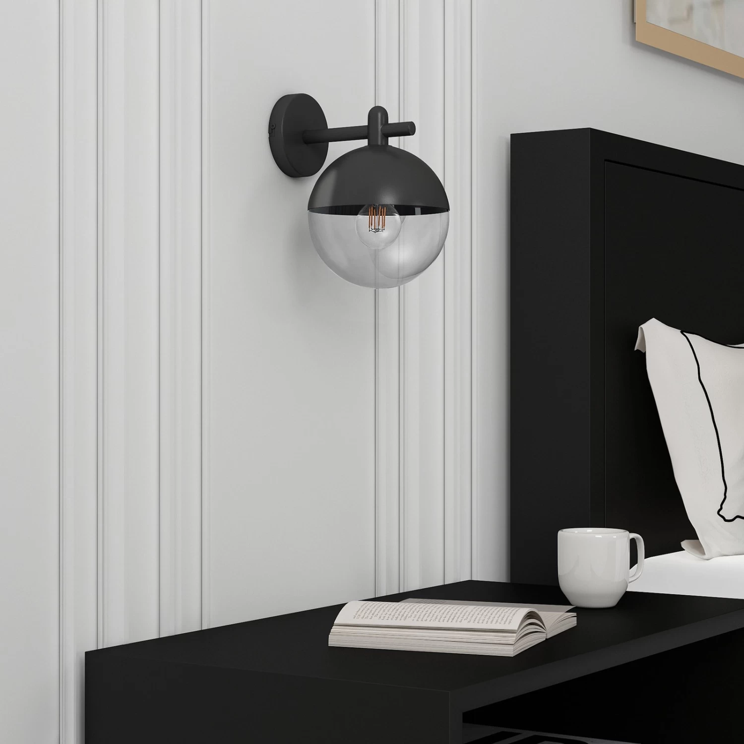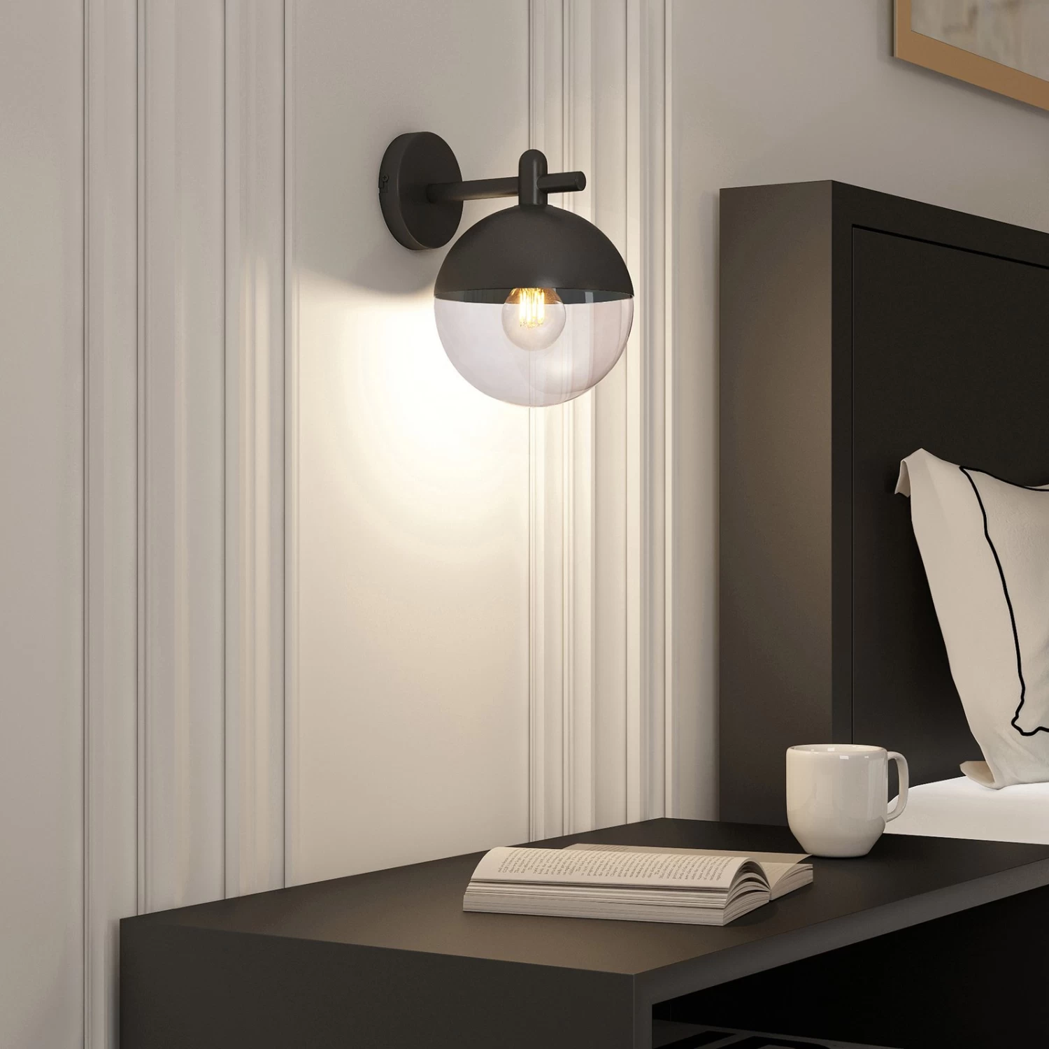 Edles Design fĂŒr besondere WohnrĂ€ume: die Wandleuchte Dustian aus Klarglas und schwarzem Metall