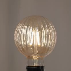 E27-LED-Lampe in G95-Globeform mit amberfarbener OberflĂ€che und Rillenstruktur, dimmbar, CRI > 90 – in praktischem 5er-Set