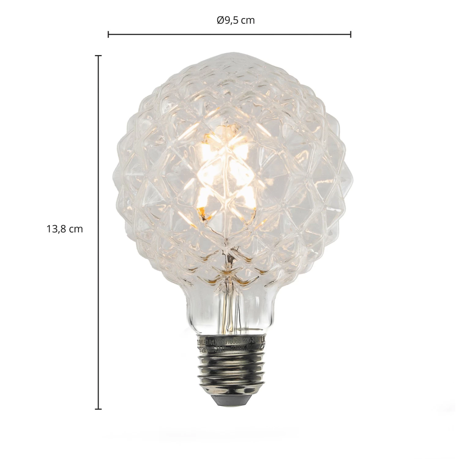 E27 LED-Filamentlampe in Globeform G95, dimmbar, Oberfläche strukturiert, CRI > 90