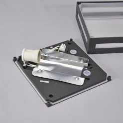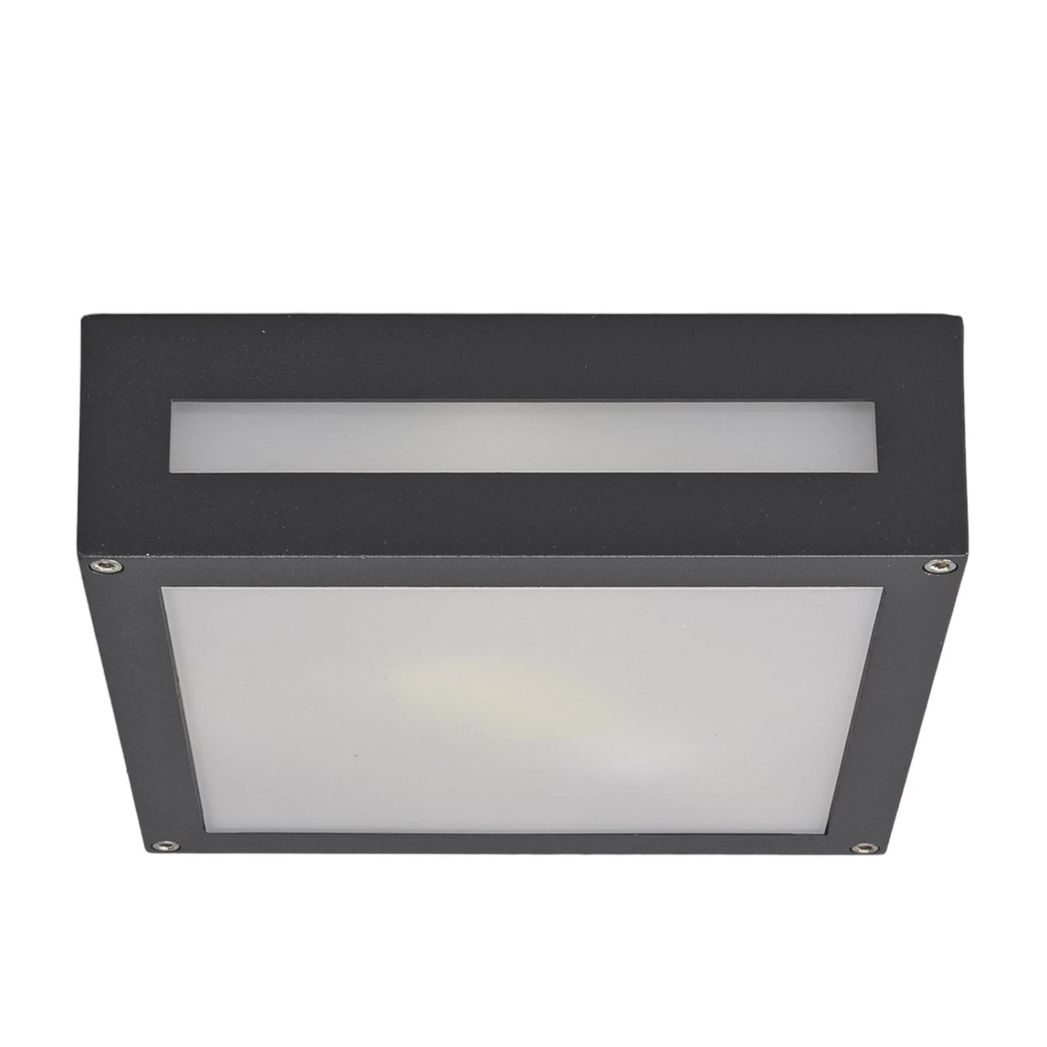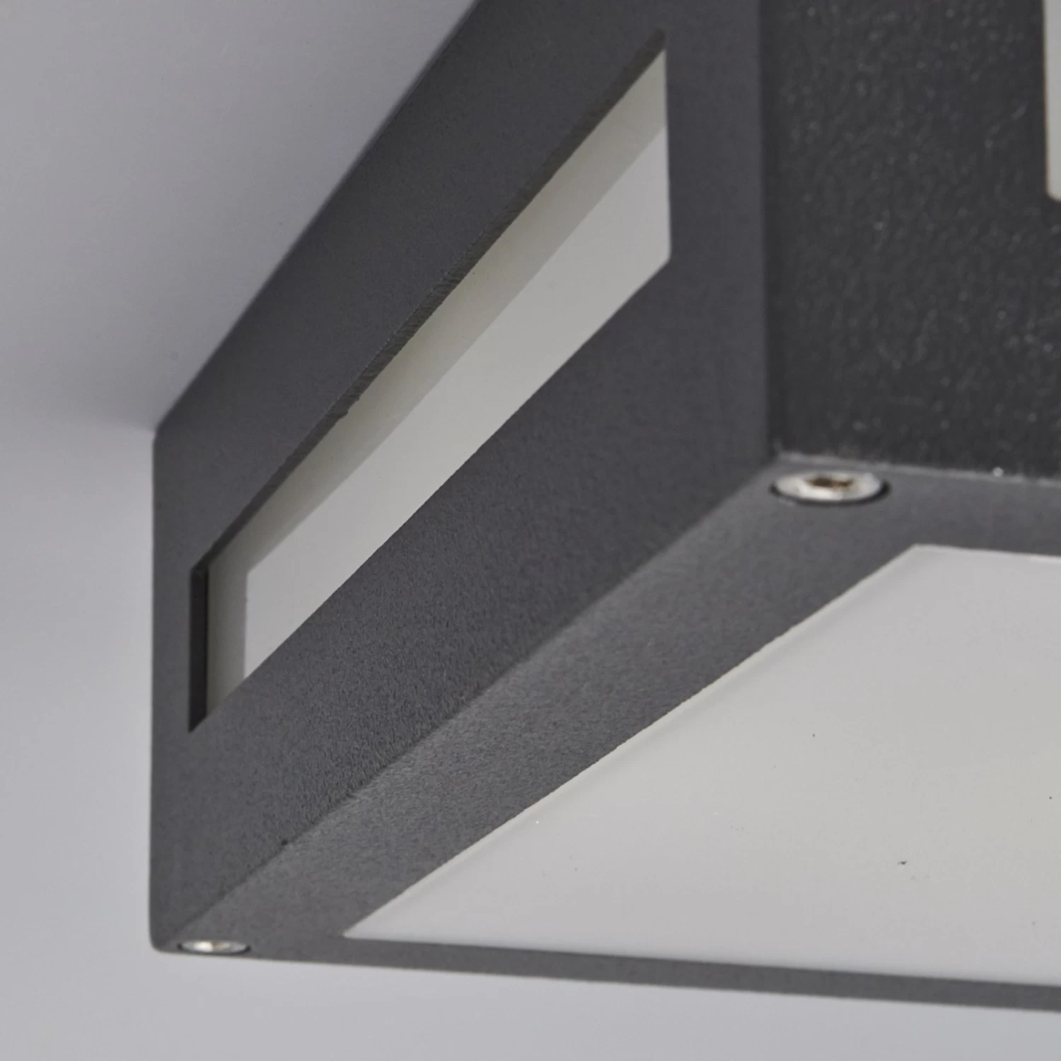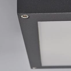 Auch im Außenbereich finden Deckenleuchten gelegentlich Verwendung, nämlich dann, wenn man kleinere Überdachungen beleuchten möchte, z.B. über der Haustür oder bei Terrassen und Balkonen. IP54 kennzeichnet, dass Schutz vor dem Eindringen von Staub und Wasser gewährleistet wird, so dass Nerea bedenkenlos draußen verwendet werden kann. Optisch präsentiert sich die Außendeckenleuchte als Kombination aus grafitgrauem Aluminium und opalweißem Polycarbonat, was angenehm dezent erscheint. Das Licht entweicht nicht nur nach unten, sondern durch schmale Auslässe auch seitlich. Eingesetzt werden können Energiesparlampen der Fassung E27 bis maximal 15 Watt.