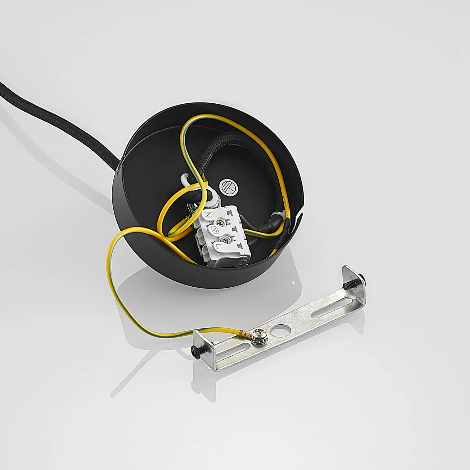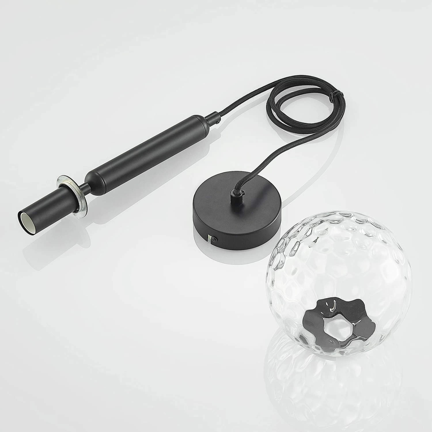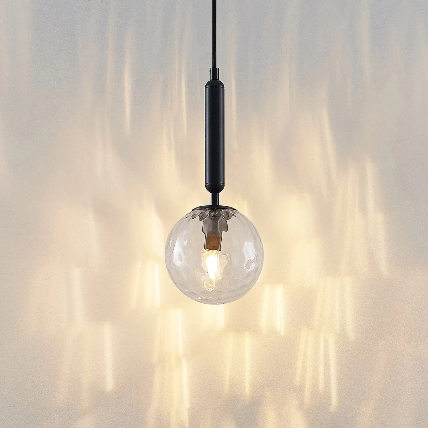 Die HÀngeleuchte Edami kommt in einem dunklen Look daher, der durch den transparenten Leuchtenschirm nicht zu schwer im Raum wirkt. Das GehÀuse aus Eisen wurde in Schwarz gestaltet. Der kugelförmige Leuchtenschirm besteht jedoch aus transparentem Glas und verleiht der Leuchte eine gewisse Leichtigkeit. Das Design wirkt ruhig und solide, weshalb die Leuchte auch im gewerblichen Bereich einen Platz findet. Da die Brennstelle von allen Seiten gut sichtbar ist, wÀre hier ein dekoratives LED-Leuchtmittel in Filament-Optik von Vorteil, um den Gesamteindruck der Leuchte zu unterstreichen.