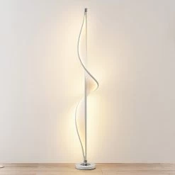 Die LED-Stehleuchte Edano wurde sehr auĂergewöhnlich gestaltet. Ihr weiĂer Textilschirm windet sich wie eine Stoffbahn von oben bis unten um das aufragende GestĂ€nge und wirkt, als wĂŒrde der Stoff vom Wind verwirbelt. Der weiĂe Stoff wird von warmweiĂen LEDs beleuchtet, die das gesamte Gebilde mit dem Einschalten des Lichts noch effektvoller in Szene setzen. Doch selbst ausgeschaltet wirkt die LED-Stehleuchte Edano durch ihre eigenwillige Form und ihren effektvollen Schirm bereits ungemein dekorativ und stellt ein Designobjekt im Wohnraum dar.