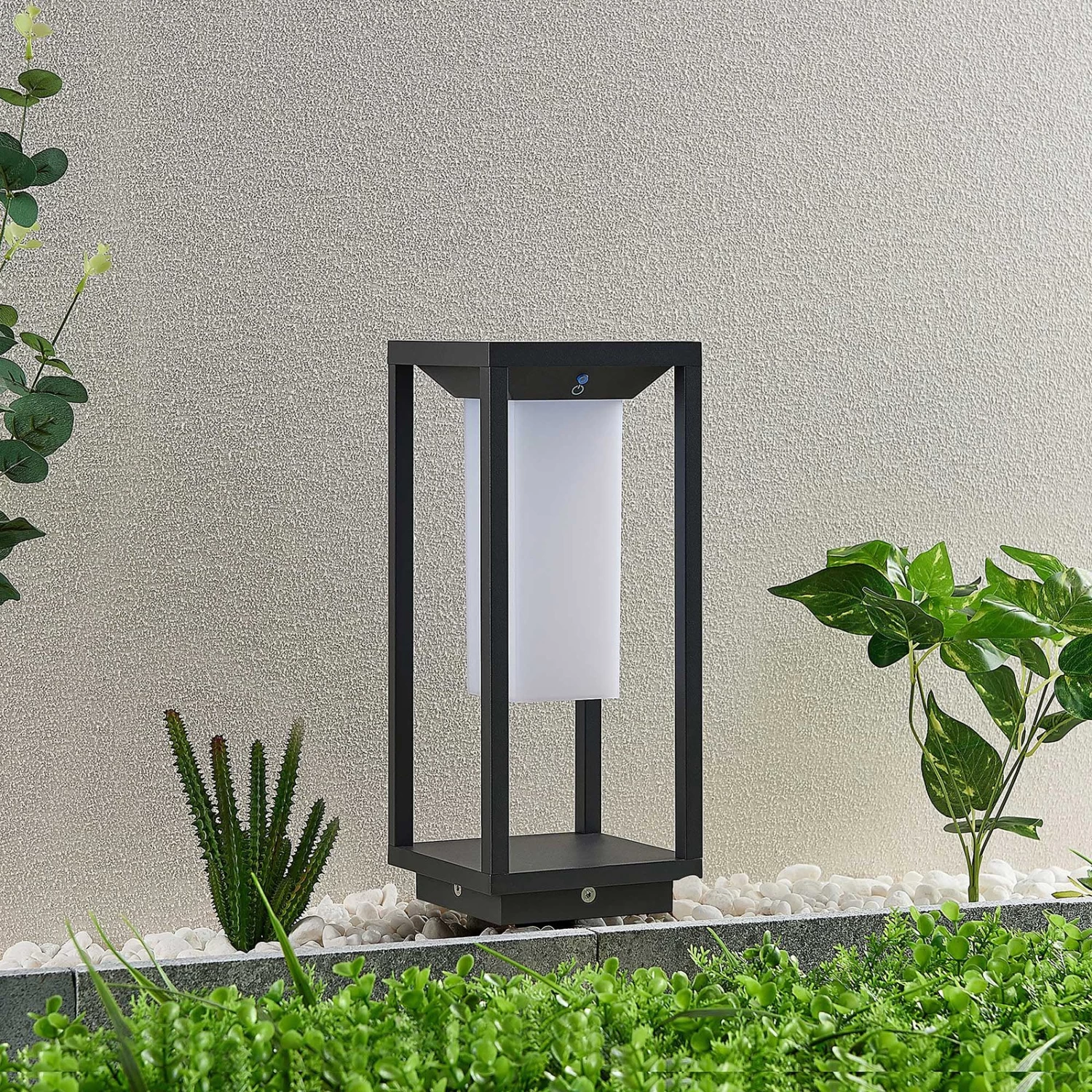 LED-Solarsockelleuchte Eliel verschönert den Garten, mit DÀmmerungssensor