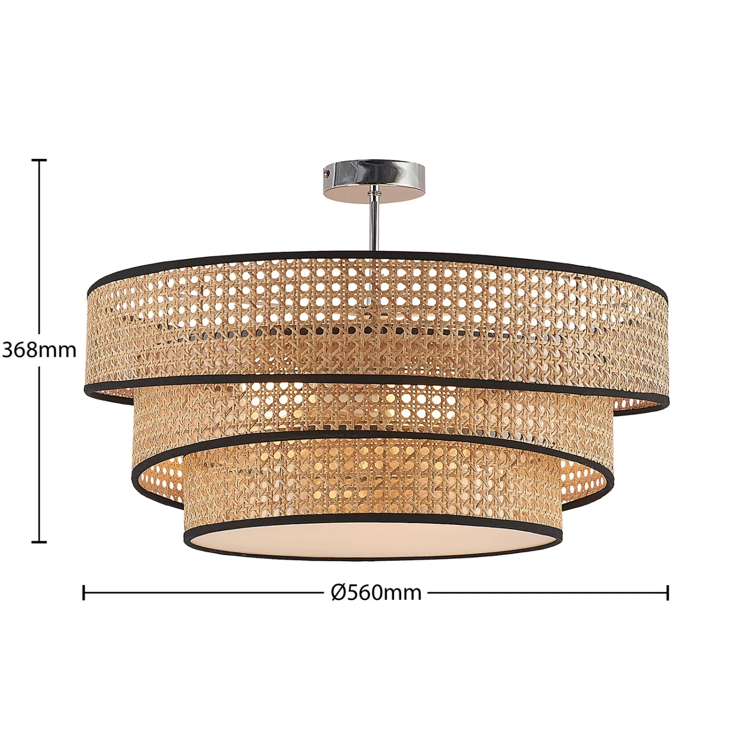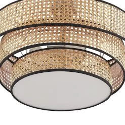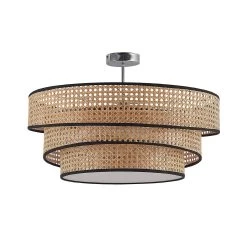 Markante Deckenleuchte Elowen mit drei Leuchtenschirmen aus Rattan, Wiener Geflecht