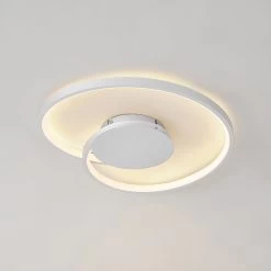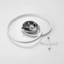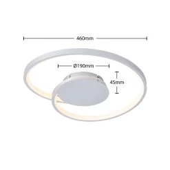 Die LED-Deckenleuchte Enesa hat einen stilvollen und praktischen Charakter. Von einer runden Deckenhalterung erhebt sich schwungvoll eine schmale Strebe, welche sich einmal im Kreis bewegt und somit ein attraktives Muster erzeugt. Entlang dieser Streben verlaufen festverbaute LEDs, welche mit Hilfe des Wandschalters in Bezug auf ihre Helligkeit dimmbar sind. Mit Hilfe der 4-Stufen-Dimmtechnik sowie der regulÀren Off-Funktion lÀsst sich die Leuchte in 100 %, 60 %, 30 % und 13 % ihrer gÀngigen Helligkeit dimmen und wie gewohnt an- und ausschalten. Dies geschieht durch das mehrmalige BetÀtigen des Wandschalters. Das moderne Design der LED-Deckenleuchte Enesa setzt stilvolle Akzente an Wohnungsdecken und macht vor allem in einem Wohnzimmer oder in einem Schlafzimmer eine super Figur.