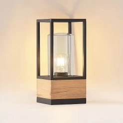 Die Außendeckenlampe Enjan überzeugt durch die markantes Aussehen. Ihr Leuchtenkörper besteht aus schwarzem Aluminium und einem prägnanten Teakholz-Element. Sie kann mit entsprechenden Leuchtmitteln bestückt werden, sodass die Lichtintensität und die Lichtfarbe an die persönlichen Bedürfnisse angepasst werden kann. Die Schutzart IP65 macht die Leuchte nachweislich staubdicht und schützt sie gegen Strahlwasser, sodass sie den Wetterbedingungen im Außenbereich trotzt. Die Außendeckenleuchte Enjan eignet sich hervorragend für die Beleuchtung einer Terrasse und kann bei Bedarf mit weiteren Lampen ihrer Serie kombiniert werden, um einen stimmigen Gesamteindruck zu erschaffen.
