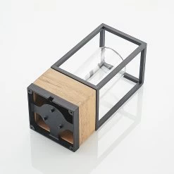 Eckige Außendeckenleuchte Enjan aus Aluminium und Teakholz