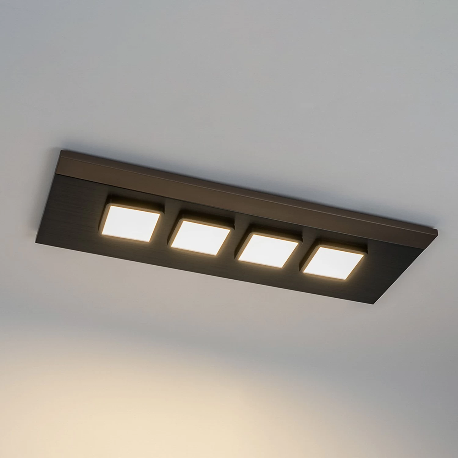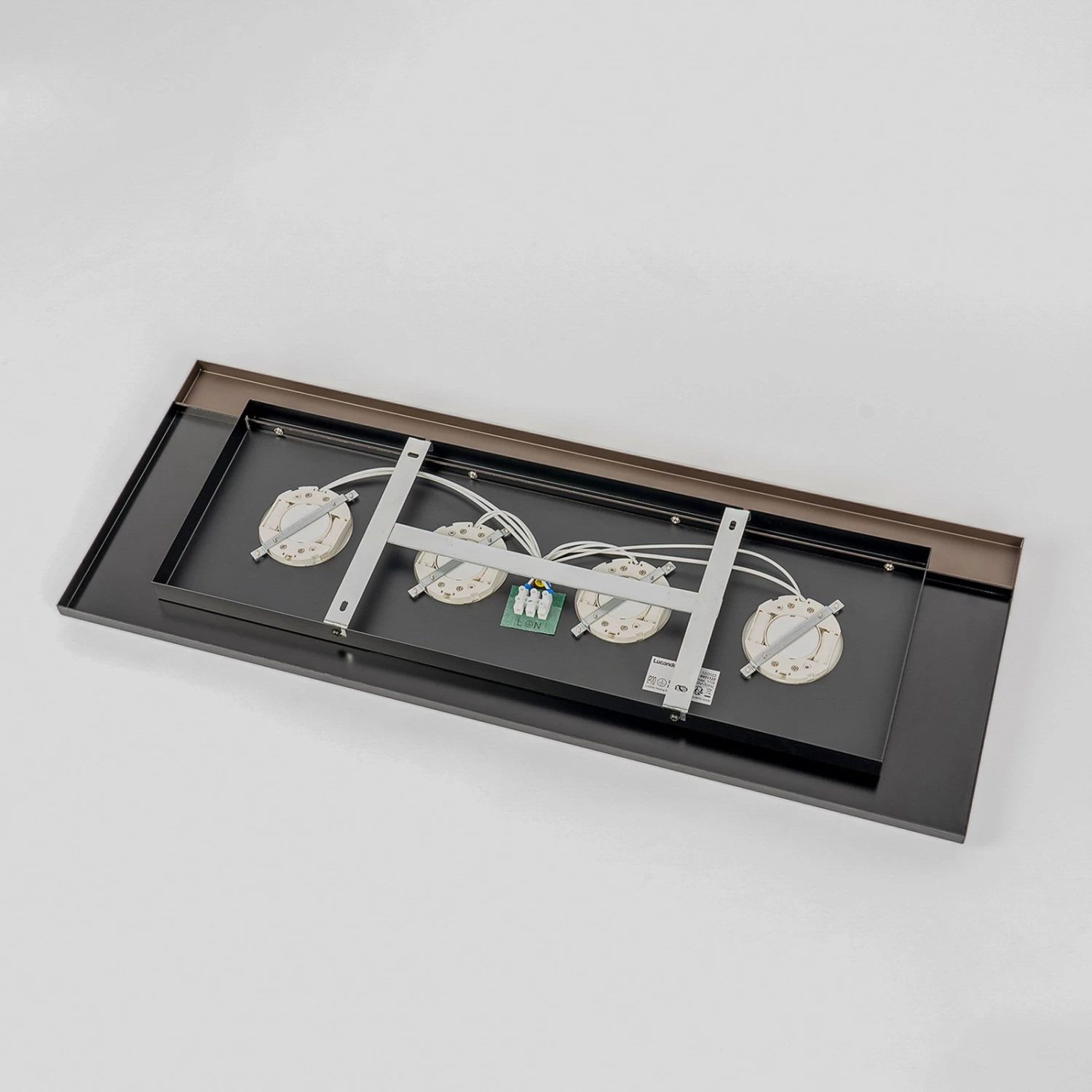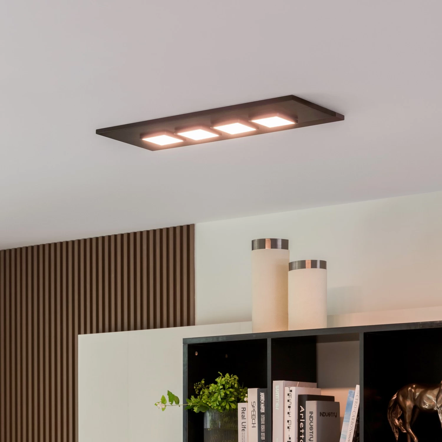 LĂ€ngliche, vierflammige LED-Deckenlampe Esteria in einem exklusiven DesignSetzen Sie mit dieser formschönen Deckenleuchte tolle Lichtakzente und verleihen Sie Ihrer Inneneinrichtung das gewisse Etwas. Das Modell Esteria verbreitet Licht in einer gemĂŒtlichen warmweiĂen Farbtemperatur. Die Lampe steht in Lucande-MarkenqualitĂ€t fĂŒr ein einzigartiges WohngefĂŒhl und gelungenes Design. Sie ist mit vier leicht austauschbaren Leuchtmitteln, die wohnliches Licht schenken, bestĂŒckt. Die Leuchte in den Farben Schwarz und Graphit ist universell anwendbar und kann ohne Probleme in verschiedene Anwendungsbereiche integriert werden. Das Modell Esteria macht in seinem modernen Stil, welcher einem Konzept von Ingo Thiele entspringt, eine optimale Figur und ĂŒberzeugt nicht nur mit einem schönen Lichtspiel, sondern erfĂŒllt auch eine dekorative Funktion.