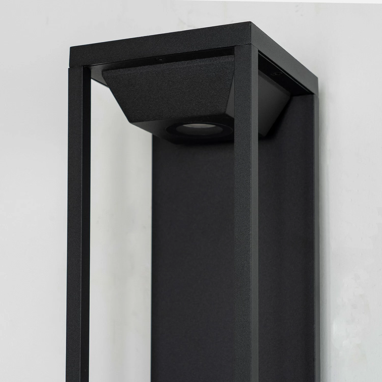 Diese schöne LED-AuĂenwandleuchte eignet sich hervorragend dafĂŒr, den Bereich des Hauseingangs oder der Terrasse auszuleuchten. Sie besitzt eine gute Schutzart, dank der sie der Witterung langfristig standhalten kann. Die fest verbauten LEDs sind leuchtstark und sparsam zugleich. Sie punkten mit ihrem warmweiĂen Lichtschein, der sehr einladend wirkt. Dank der direkten Abstrahlung nach unten kann der Betrachter auĂerdem nicht geblendet werden. Das schwarze Gestell aus Aluminium wirkt sehr solide und elegant an der Hauswand und harmoniert gut mit einer modernen Umgebung.