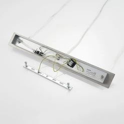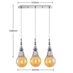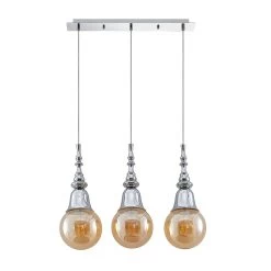 Gesja ist eine dreiflammige Pendellampe in länglicher Balkenform, die hervorragend über dem Esstisch genutzt werden kann, um diesen hell auszuleuchten. Statt richtiger Schirme kommen hier größere Fassungen zum Einsatz, die mit G125-Globelampen bestückt werden sollten, um die Optik passgenau zu ergänzen. Diese haben einen größeren Durchmesser als das klassische Glühlampenformat und nehmen somit eine größere Präsenz ein. Die entsprechenden Leuchtmittel können separat über das Zubehör bestellt werden. Die aus Aluminium bestehenden Elemente besitzen nicht nur barocke Formen, die Kelchen gleichen, sondern überdies auch ein glänzende Oberfläche in Chrom, so dass Nostalgie und Modernität hier in einem ausgewogenen und doch individuellen Verhältnis stehen.