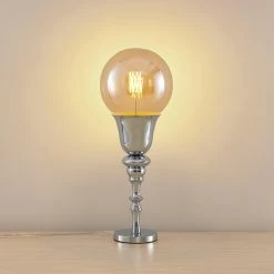 ChromglĂ€nzende Tischlampe Gesja mit eleganter Form – ideal als Zusatzbeleuchtung im Wohnzimmer