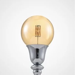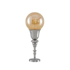 Die schirmlose Tischleuchte Gesja weiĂ mit einem besonders individuellen Ausdruck zu ĂŒberzeugen, denn sie ist in Gestalt eines Kelches gehalten, der barocke Rundungen besitzt und eine nostalgische Ausstrahlung mit einer gewissen ModernitĂ€t verbindet, da die OberflĂ€che in einer schön verchromten Hochglanzoptik gehalten ist. Dieses Spiel aus GegensĂ€tzen macht die Tischlampe Gesja zu einem attraktiven Lichtspender fĂŒr besondere Wohnbereiche. Um das Erscheinungsbild stilvoll zu komplettieren, sollte eine G125-Globelampe gewĂ€hlt werden, die aufgrund ihrer gröĂeren AbmaĂe eine beachtliche PrĂ€senz besitzt und das Design formvollendet abrundet. Das entsprechende Leuchtmittel kann separat ĂŒber das Zubehör bestellt werden.