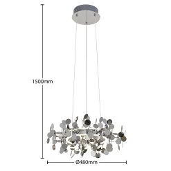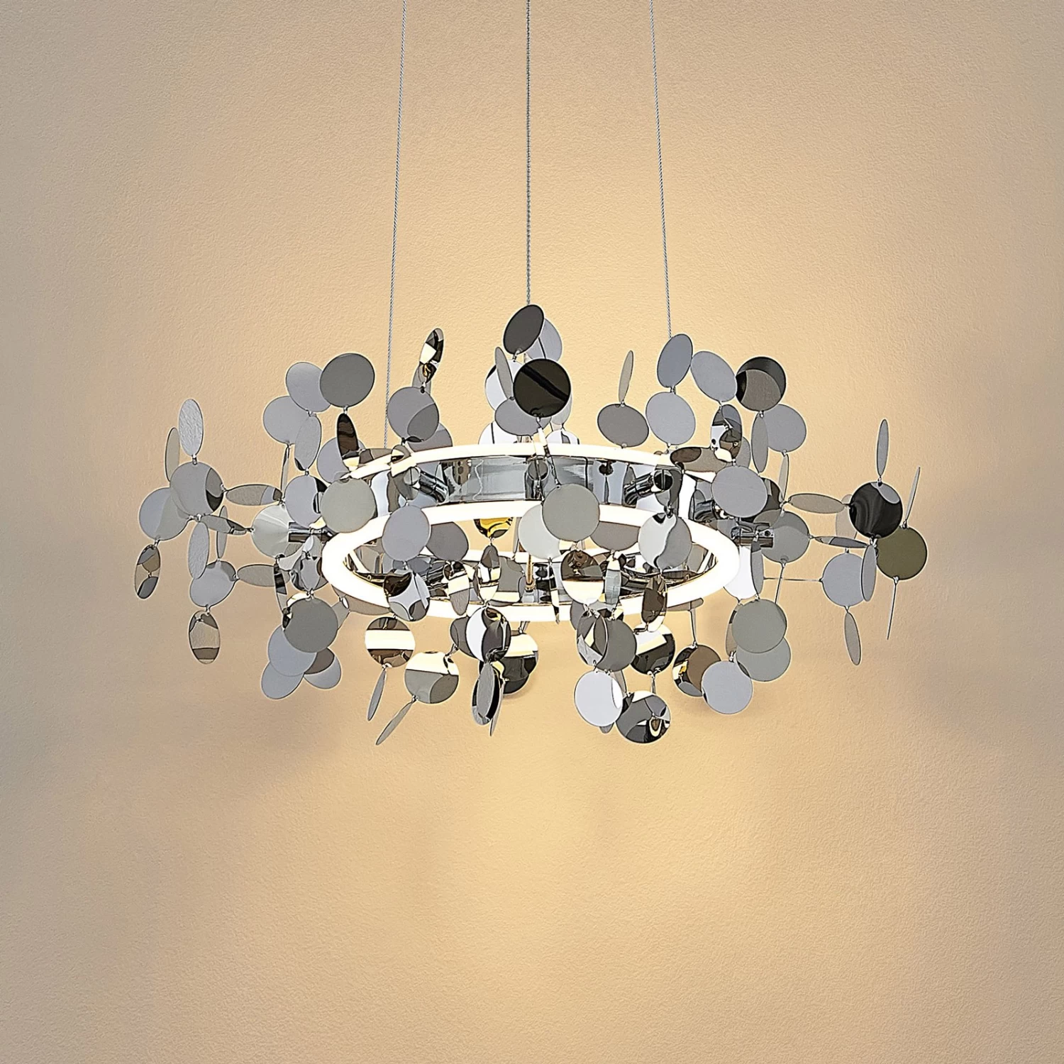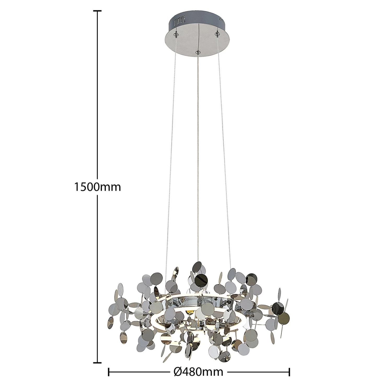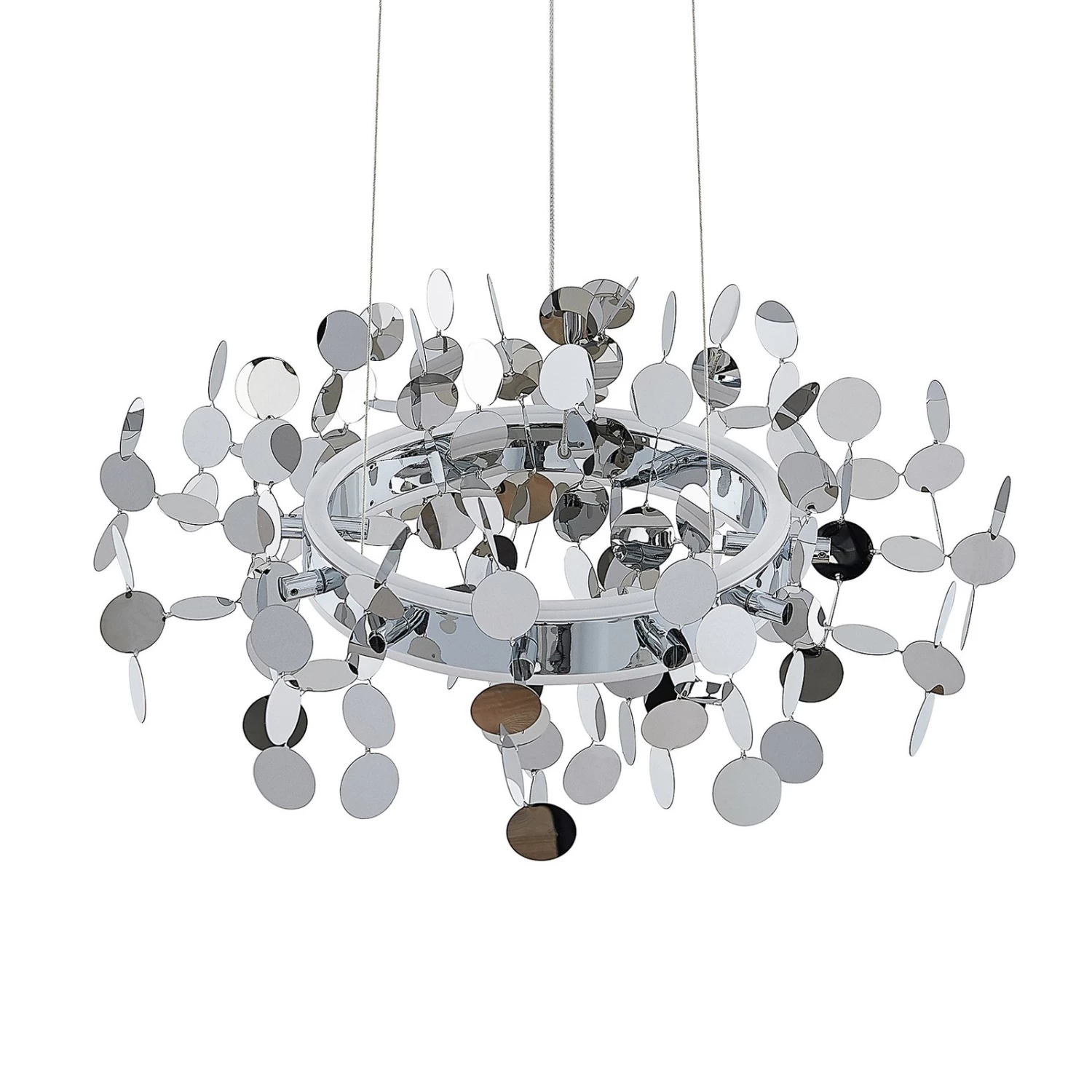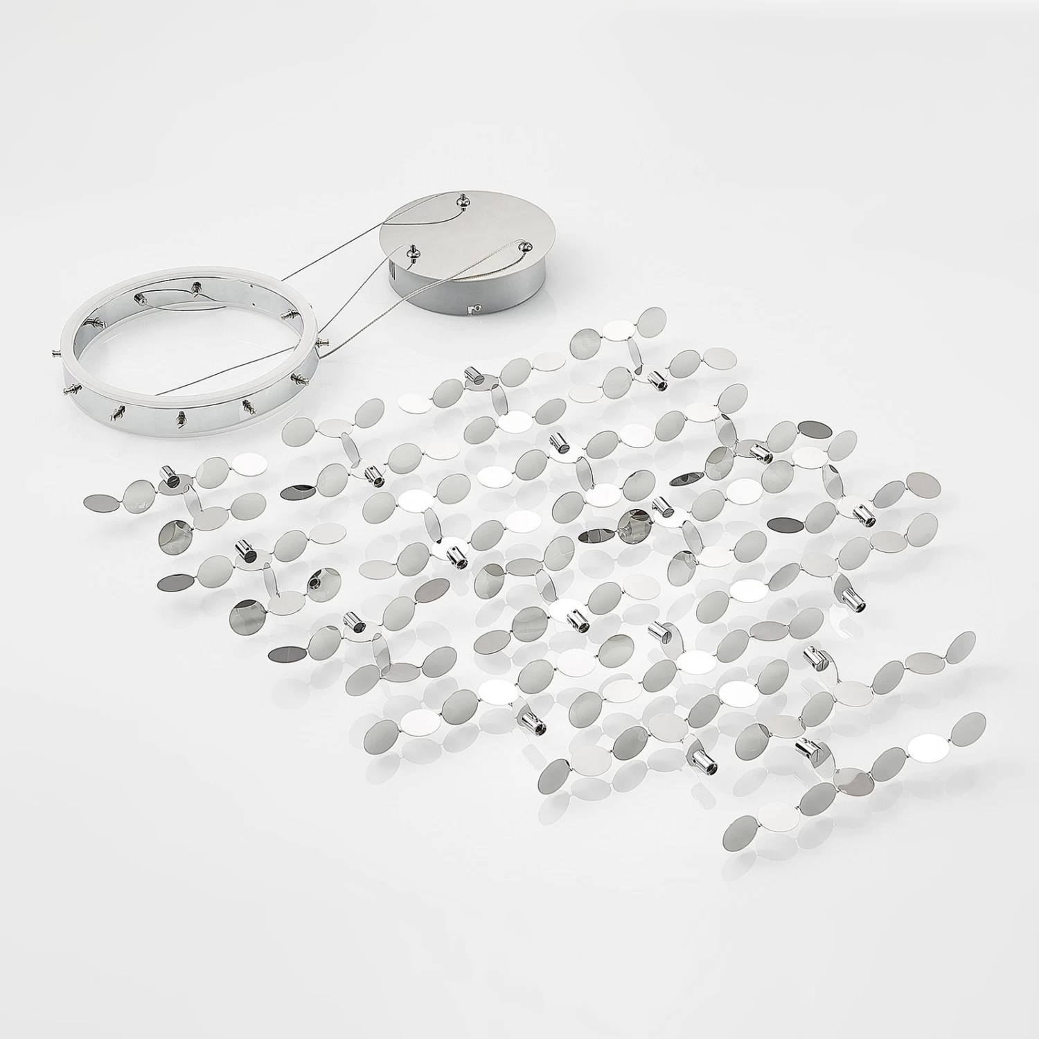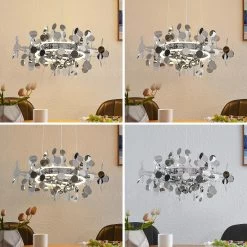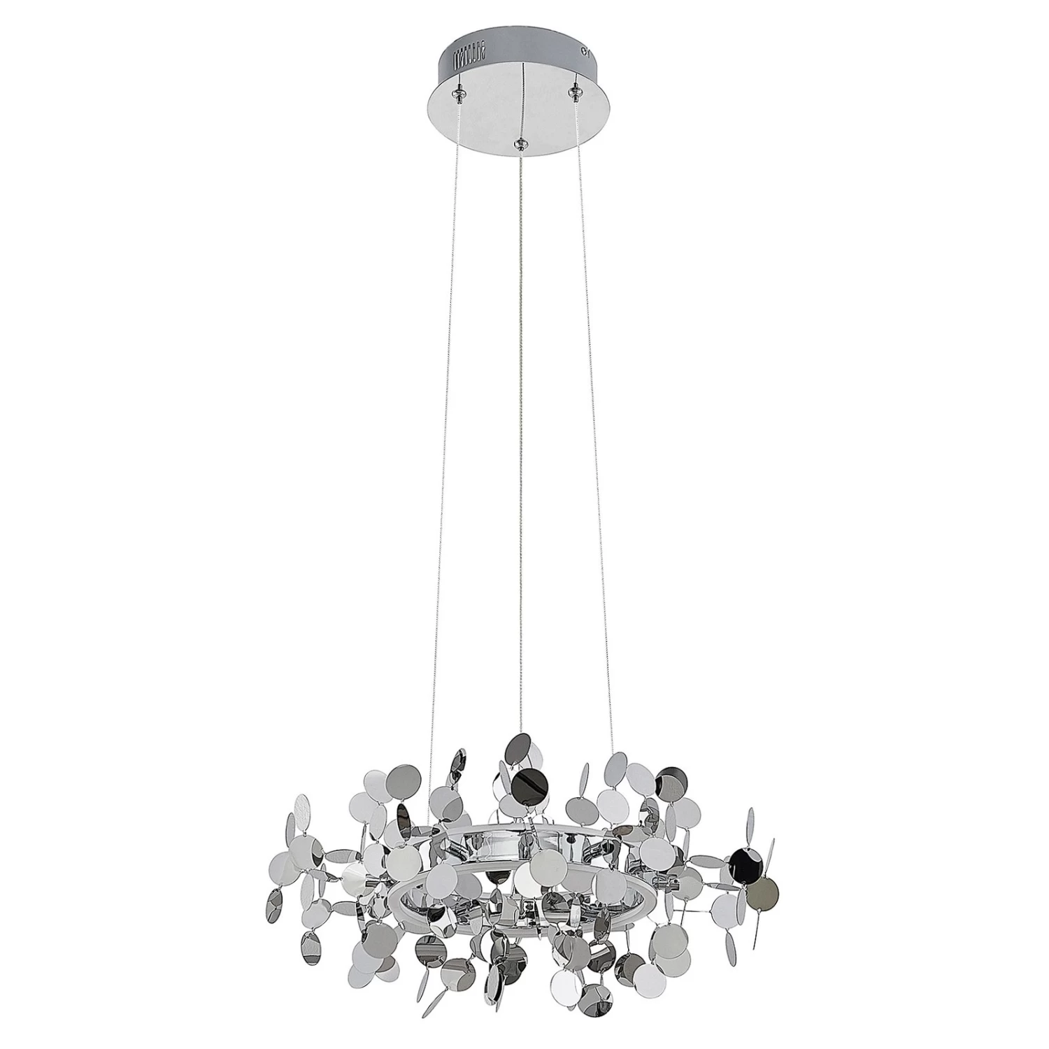 Die LED-HĂ€ngeleuchte Glimmo ĂŒberzeugt mit ihrem interessanten Look, der sich vor allem durch ihre flachen, kreisrunden Dekorelemente auszeichnet. Diese scheinen um den ringförmigen Leuchtenschirm herum förmlich zu schweben. Die runde Form wird auch von der Deckenhalterung aufgegriffen und lĂ€sst das Design dadurch harmonisch wirken.