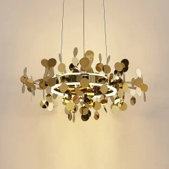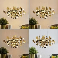 Die LED-HĂ€ngeleuchte Glimmo besticht mit ihrem einzigartigen Look. Sie wurde aus Eisen, Aluminium und Acryl hergestellt und vereint zwei kontrastreiche Farben in ein harmonisches Gesamtkonzept. Die runde Deckenhalterung sowie der Leuchtenschirm wurden mit einem schwarzen Finish ĂŒberzogen. Die kreisrunden Dekorelemente, die um den ringförmigen Schirm zu schweben scheinen, wurden in edlem Messing gestaltet. Das warmweiĂe Licht wird gleichmĂ€Ăig zu allen Seiten abgegeben. Dieses schöne Design lĂ€sst sich zweifellos nicht nur im eigenen Zuhause, sondern auch im Bereich der Hotellerie oder Gastronomie erfolgreich einsetzen.