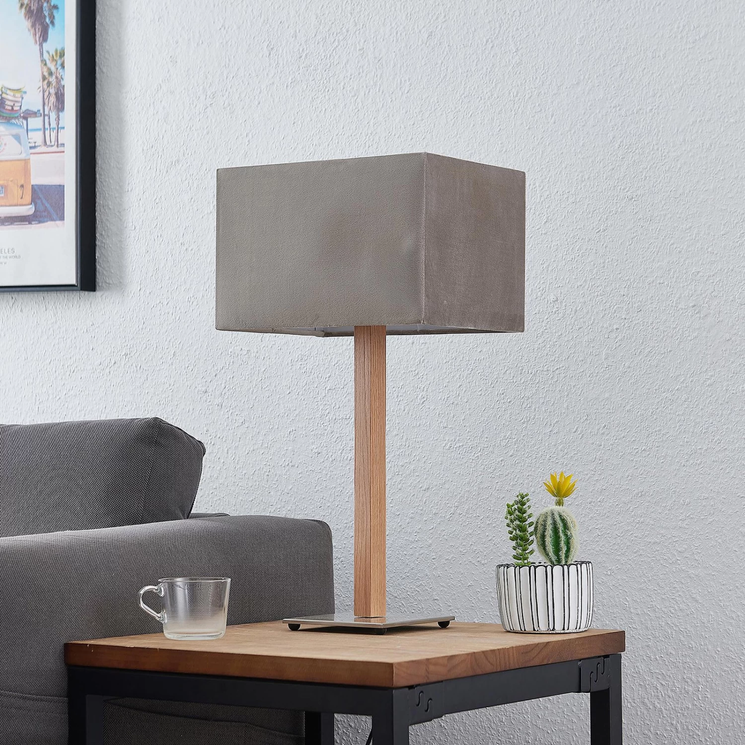 GemĂŒtliche Tischleuchte Heily mit eckigem, grauem Textilschirm