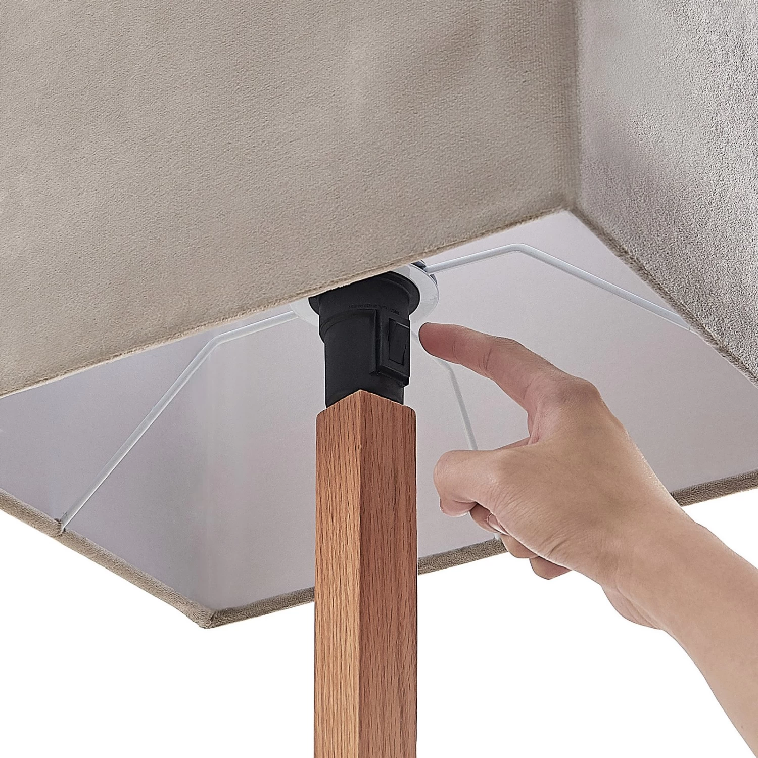 Heily vereint attraktive Eichenholz-Elemente mit grauem Textil und verbreitet mit diesem stimmigem Kontrast eine gemĂŒtliche AtmosphĂ€re. Der eckige Leuchtenschirm umgibt ein einzusetzendes Leuchtmittel, dessen Wahl auf die persönliche BedĂŒrfnisse angepasst werden kann, sodass eine passende Lichtfarbe und LichtintensitĂ€t generiert wird. Die Tischlampe Heily findet ihren perfekten Platz in einem Wohnzimmer oder einem Schlafzimmer und eignet sich hervorragend fĂŒr eine Akzentbeleuchtung eines Tisches oder einer Kommode.