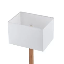 Tischleuchte Heily mit eckigem Textilschirm und hölzernem Bein