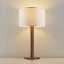 Heily ist aus Eisen, Eichenholz und Textil gefertigt und besitzt ein skandinavisches Design. Ihr weißer Leuchtenschirm kann mit entsprechenden Leuchtmitteln bestückt und somit die Lichtfarbe an die persönliche Bedürfnisse angepasst werden. An seiner Fassung verfügt sie darüber hinaus über einen Kippschalter der die Leuchte ein- und ausschaltet. Die Tischlampe Heily findet ihren perfekten Platz auf einer Kommode oder einem Tisch und generiert eine angenehme Akzentbeleuchtung. Ihr kontrastreiches Design ist darüber hinaus aber auch eine attraktive Dekoration für den Innenbereich.