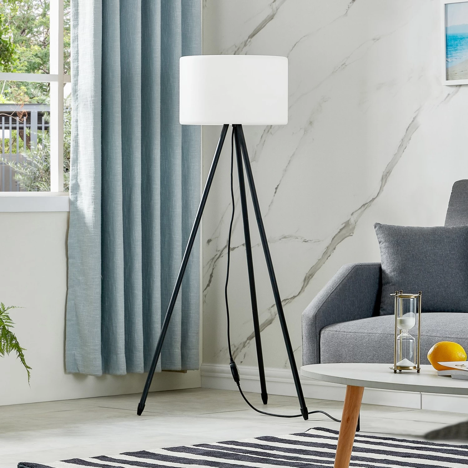 Jaimy ist eine Stehleuchte für den Außenbereich und findet ihren perfekten Platz auf einer Terrasse. Sie ist aus Aluminium und Kunststoff hergestellt und besitzt eine Farbkombination aus Weiß und Schwarz. Ihr Gestell ist dreibeinig und ermöglicht eine gewisse Stabilität. Das Stromkabel verfügt über einen Kabelschalter, über den die Leuchte einfach ein- und ausgeschaltet werden kann. Darüber hinaus ist Jaimy perfekt gegen die Wetterbedingungen vor der Haustür geeignet, da sie mit der Schutzart IP65 ausgewiesen ist und somit staubdicht und gegen Strahlwasser geschützt ist.