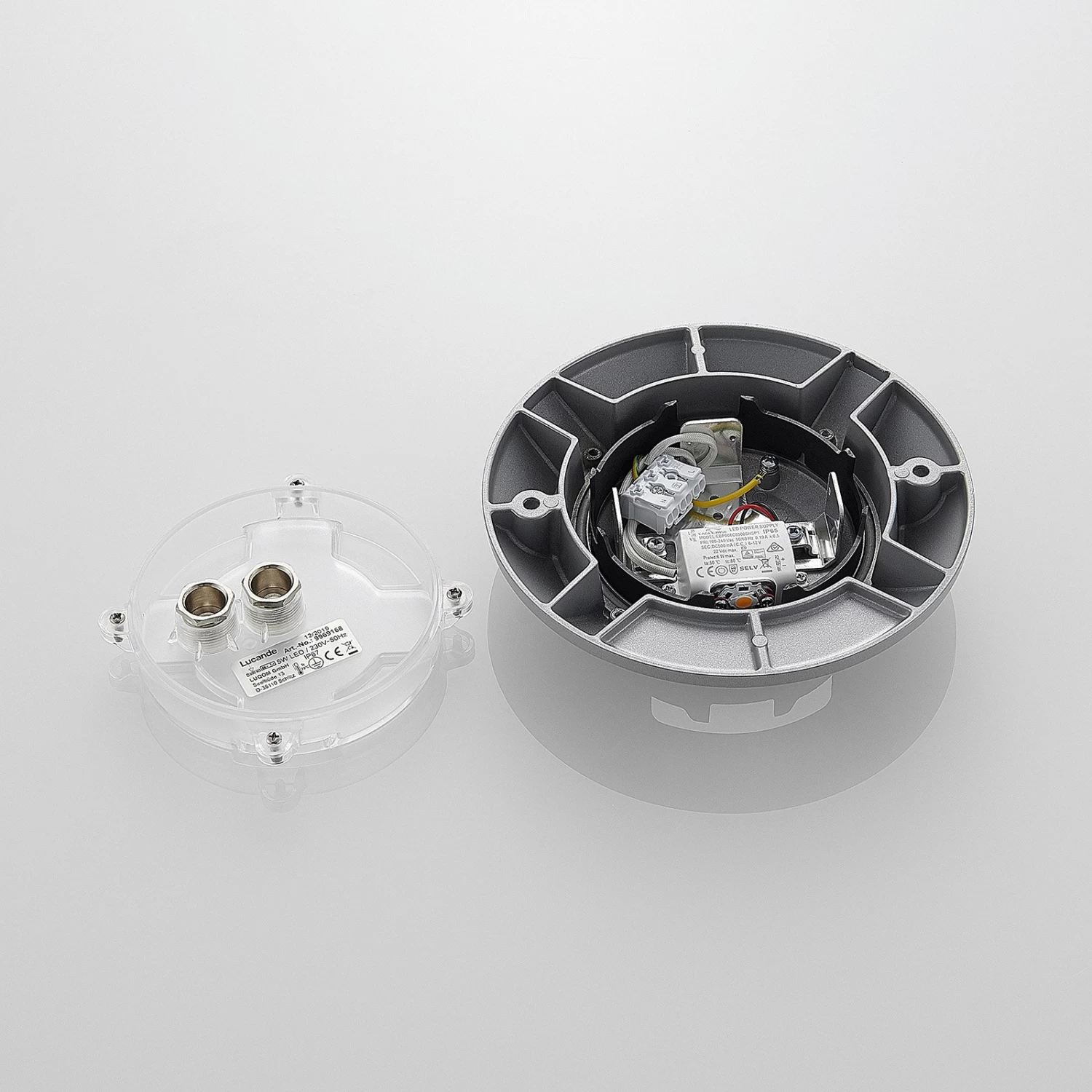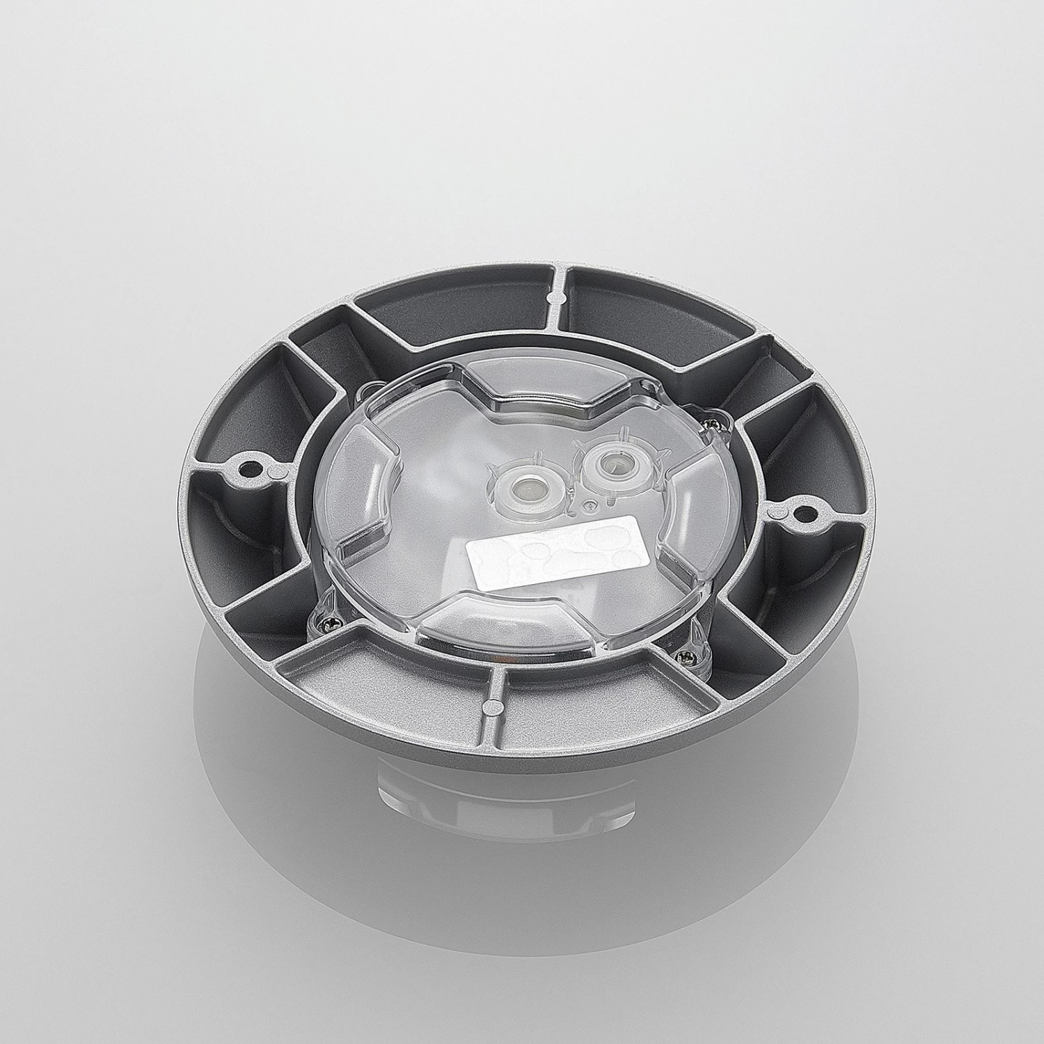Runde, silberne LED-Bodenaufbauleuchte Jeffrey fĂŒr angenehmes Orientierungslicht im AuĂenbereich, IP67