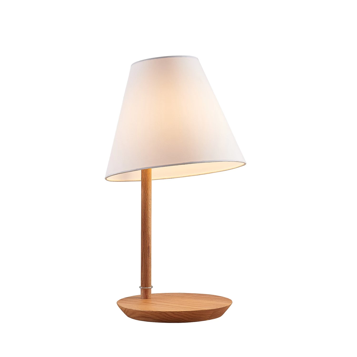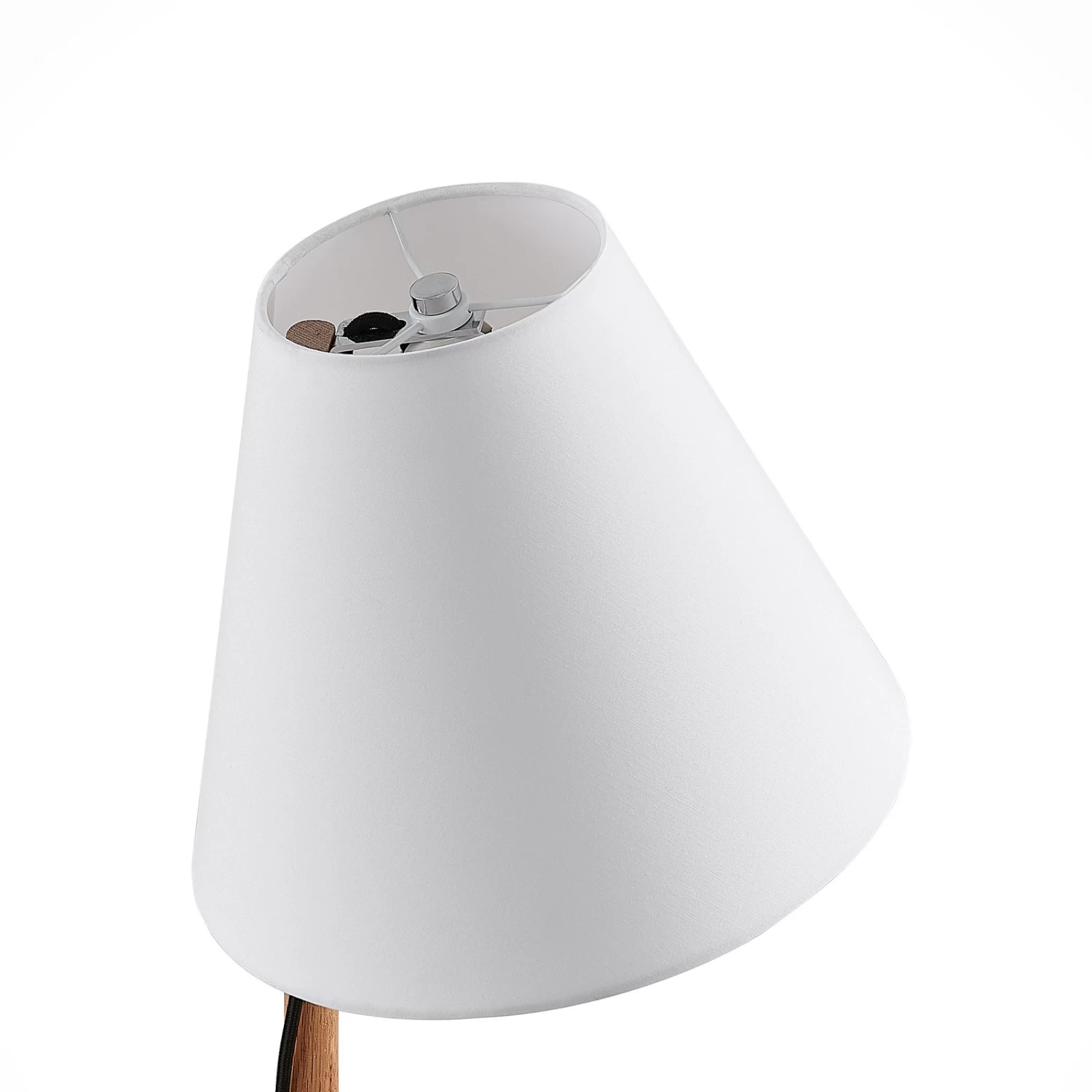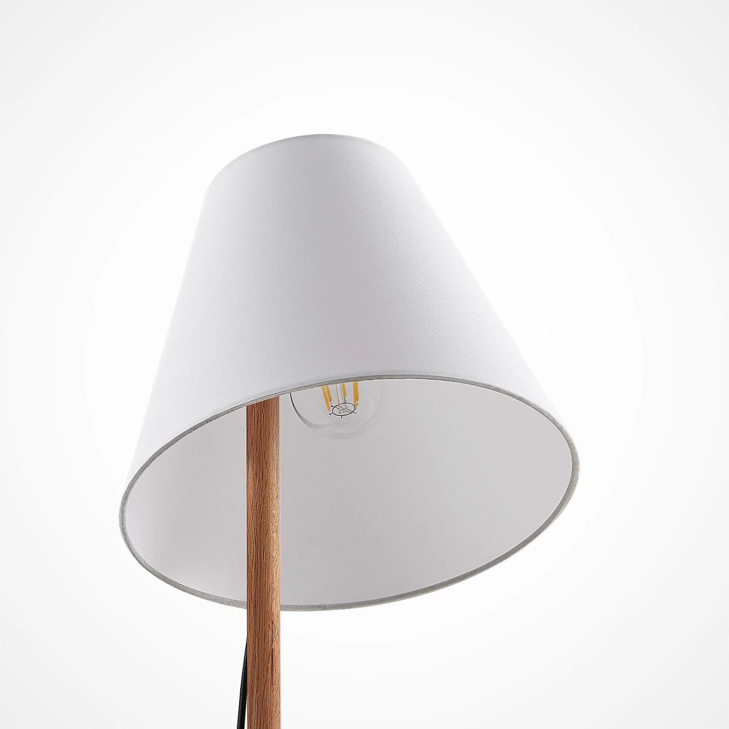 Weiße Stofftischlampe Jinda mit Holzfuß – skandinavischer Stil für gemütliche Stunden