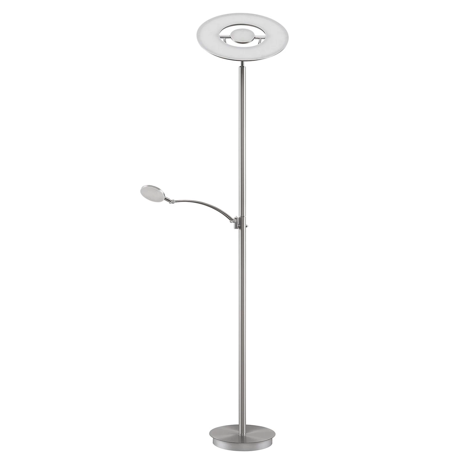 Journi eignet sich hervorragend fĂŒr ein Wohnzimmer. Die schlanke LED-Stehleuchte ist aus Eisen und Edelstahl hergestellt und besitzt zwei Leuchtenschirme. Einer sitzt an der Spitze und dient als Hauptlichtquelle, der andere ist ein praktischer Lesearm. Dieser sorgt beim abendlichen BĂŒcherlesen fĂŒr die nötige Beleuchtung. Die festverbauten LEDs der Stehlampe Journi können mit Hilfe eines Schalters an ihrer Stange gedimmt werden und ihre Lichtfarbe Ă€ndern. Mit diesen praktischen Funktionen sorgt Journi in jedem Moment fĂŒr die richtige Beleuchtung. DarĂŒber hinaus ist die LED-Stehleuchte Journi in attraktiven Chrom- bzw. Nickelfarben gehalten, die das moderne Design wohlwollend abrunden.