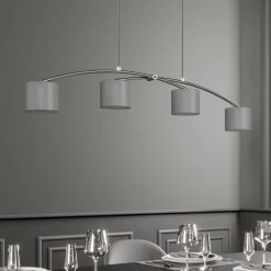 Juljana ist eine Pendelleuchte, die sehr gut ĂŒber einen Esstisch passt mit der lĂ€nglichen Form. Das Design, das opalweiĂe Glaschirme in zylindrischer, kompakter Form und satiniertes Metallgestell miteinander kombiniert, wirkt sehr elegant. Dabei ist es von einer gewissen Zeitlosigkeit geprĂ€gt und kann in vielen RĂ€umen und Stilen eingesetzt werden. Die weiĂe OberflĂ€che des Glases verteilt den Lichtschein besonders gleichmĂ€Ăig, so dass man nicht um die GemĂŒtlichkeit im Raum fĂŒrchten muss, sondern im Gegenteil viel Behaglichkeit am Tisch erlebt, der zumeist weit mehr als nur der Ort der reinen Nahrungsaufnahme ist und immer auch von einer sozialen Komponente geprĂ€gt ist, weil Familien und Freunde hier zum Beisammensein und fĂŒr den gemeinsamen Austausch aufeinandertreffen. Es sind feine, geschwungene Linien, die die Ausstrahlung dieser designorientierten Pendelleuchte in besonderem MaĂe kennzeichnen und ihre Einzigartigkeit unterstreichen.