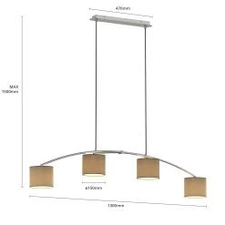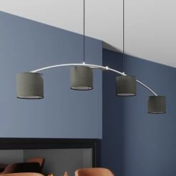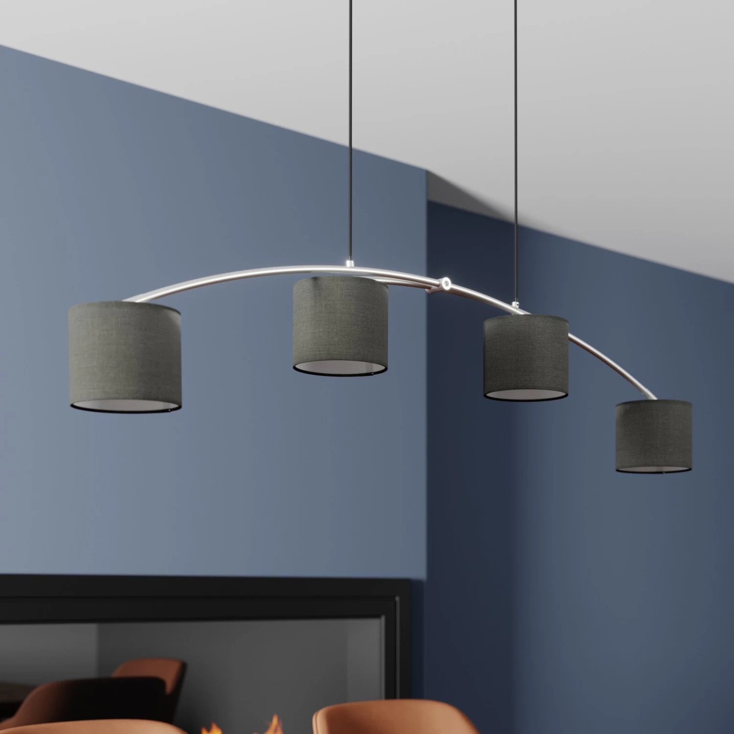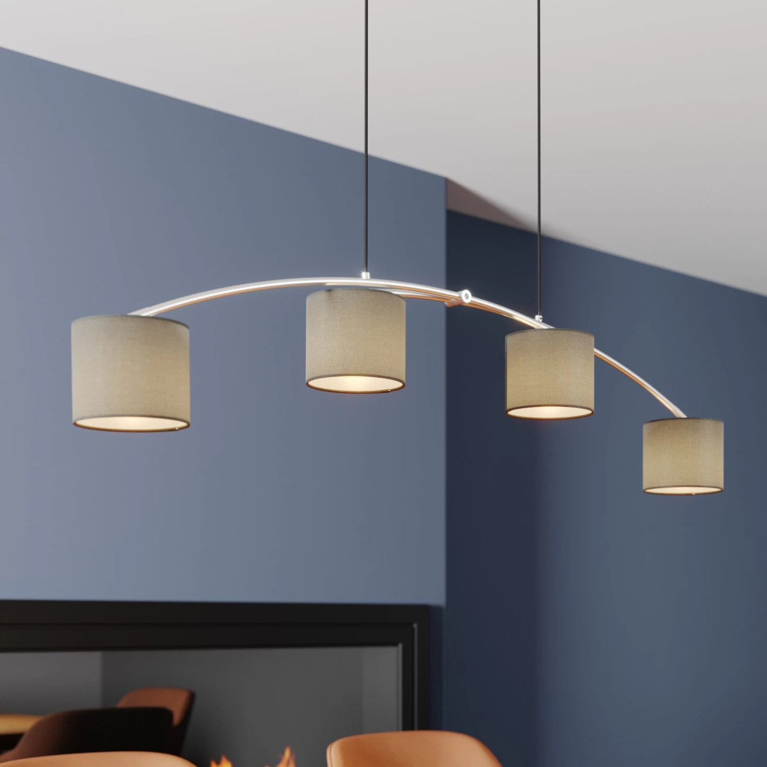 Elegante Stoff-Pendelleuchte Juljana mit vier Lampenschirmen – ideal fĂŒr den Essbereich